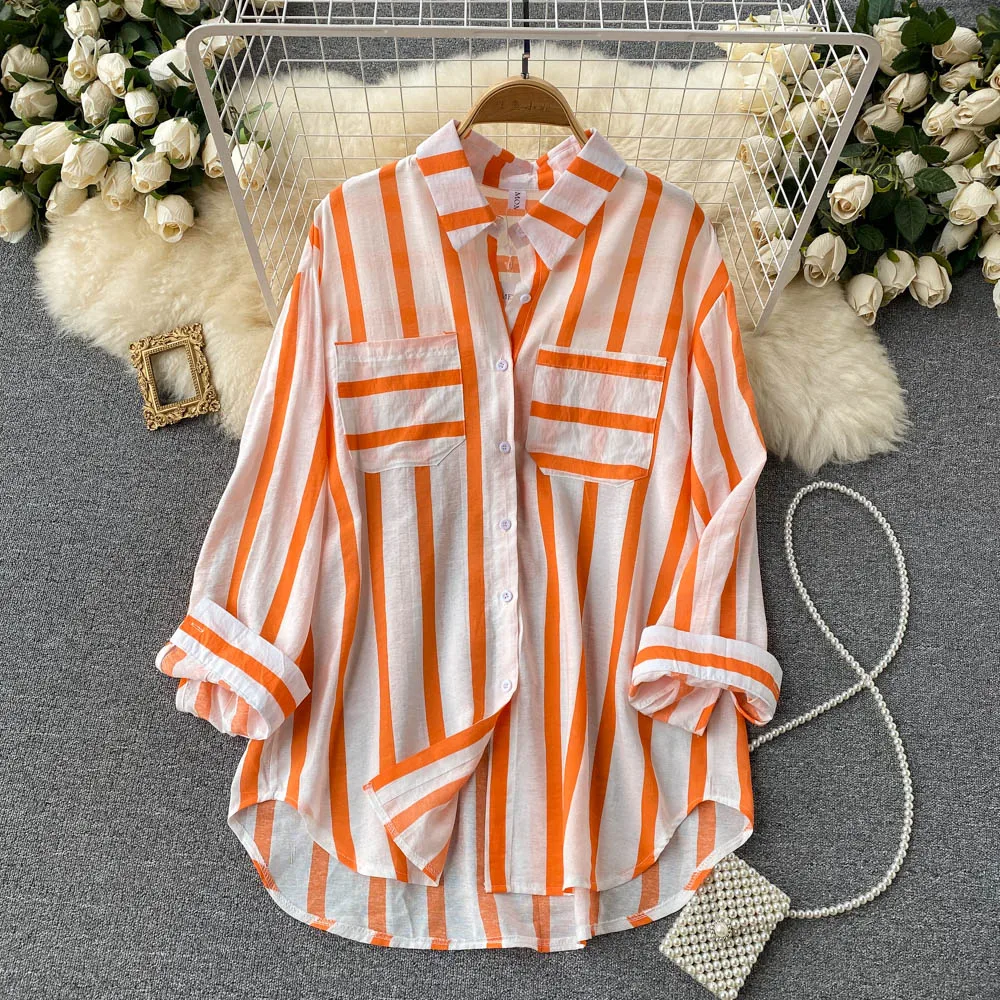 Wholesale Spring and Autumn New 2026 Striped Korean Style Casual Long Sleeve Lapel Fashion Women's Blouses and Shirts