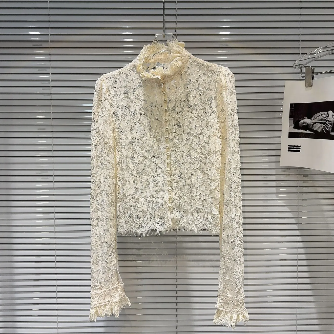 Wholesale Winter 2026 New Fashion Elegant Temperament Celebrity Lace Link Pearl Button Sexy Ladies Shirt
