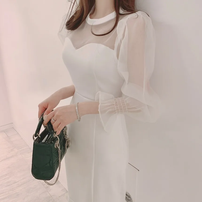 ZYHT 15325 Wholesale Spring Trendy Fashion Long Sleeve Dinner White Lace Black Velvet Elegant Party Dress Women Evening Dresses