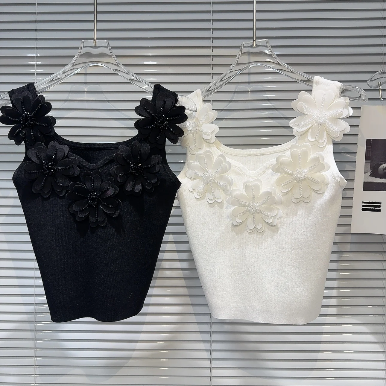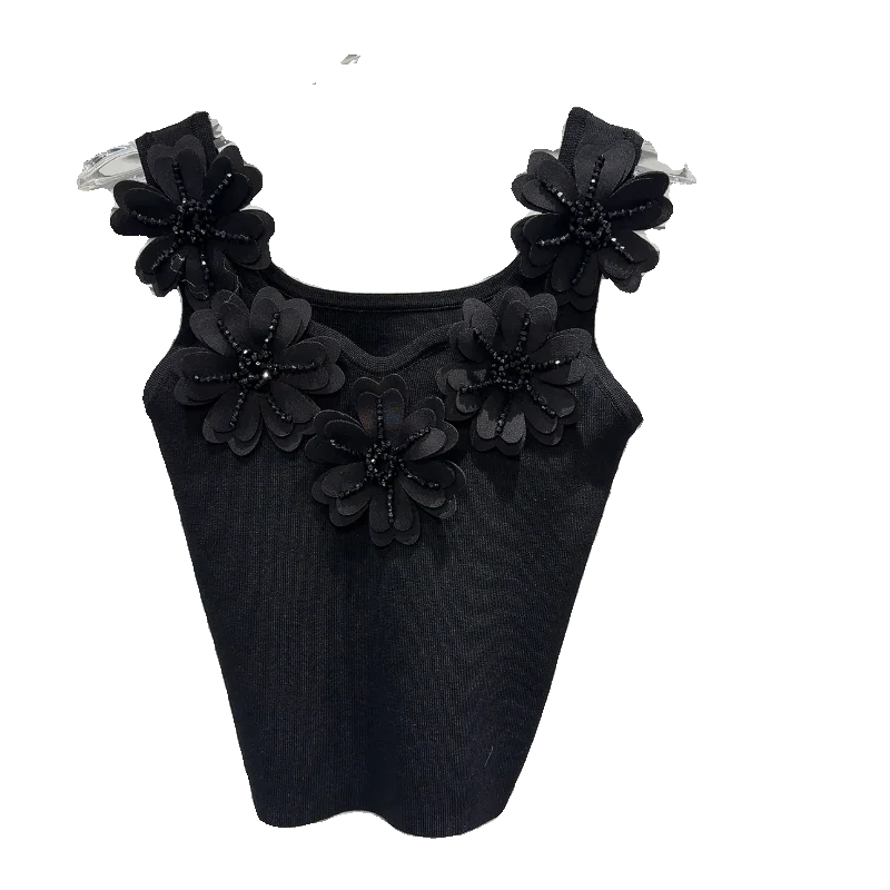 Wholesale Spring 2026 New Fashion Elegant Temperament Sexy Flower Rhinestone Beaded Solid Color Knitted Suspender Women's Vest