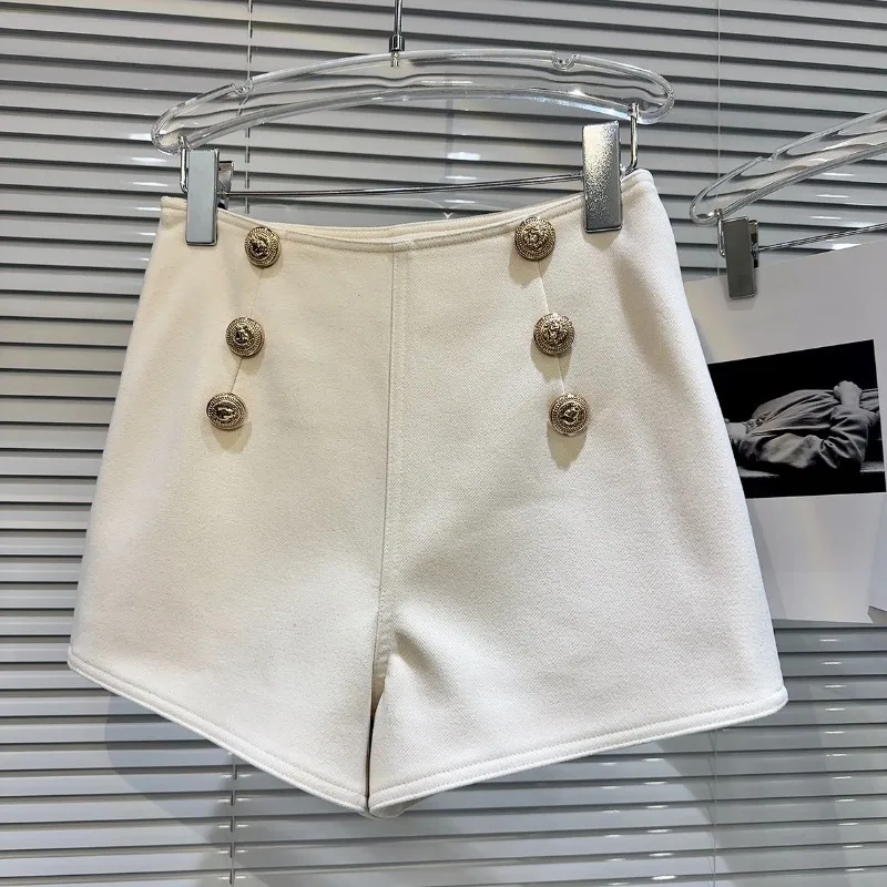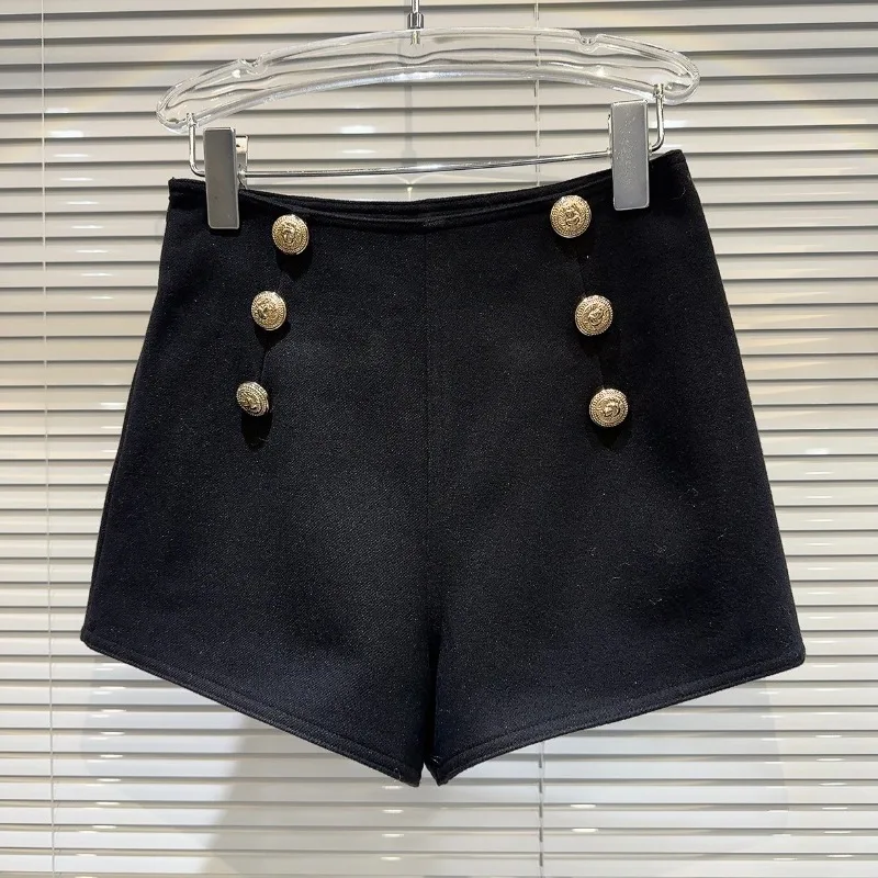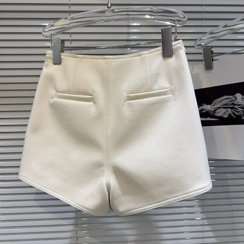Wholesale Winter 2026 New Fashion Elegant Casual Metal Buckle Temperament Celebrity Fine Woolen Women's Solid Color Shorts