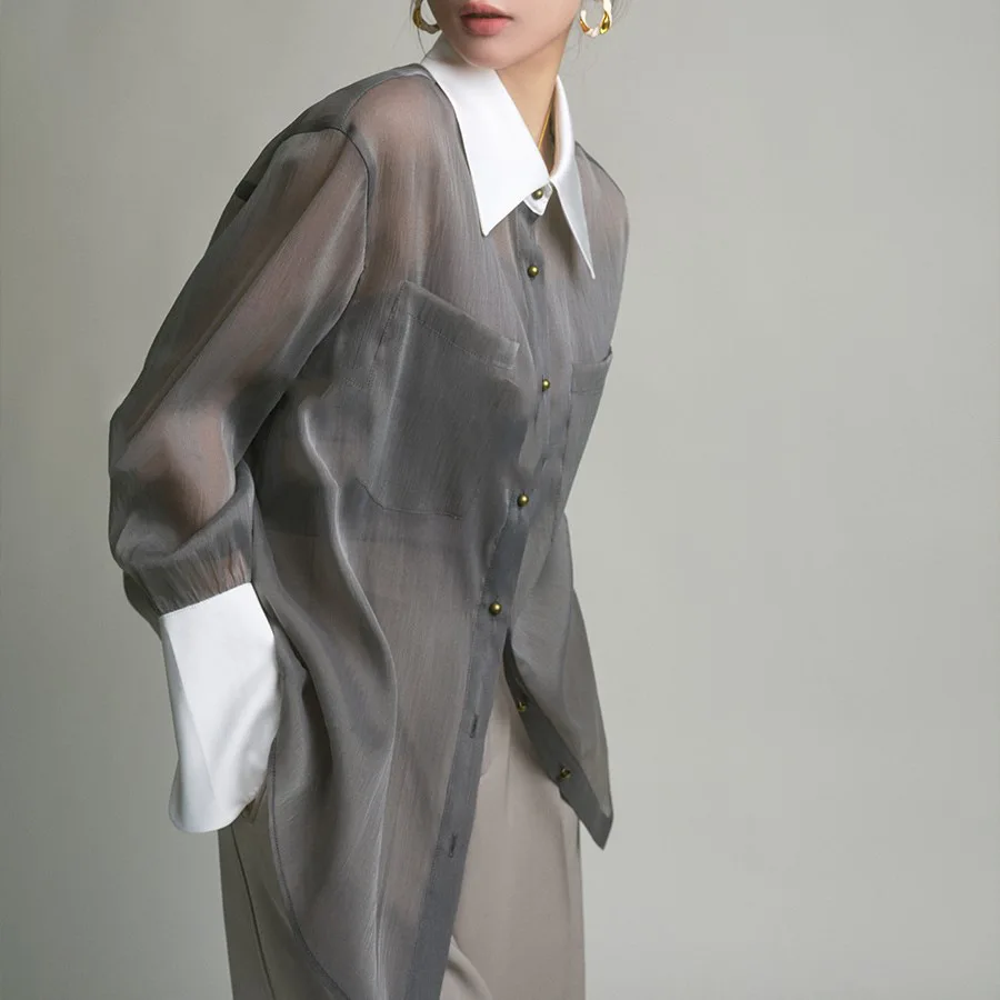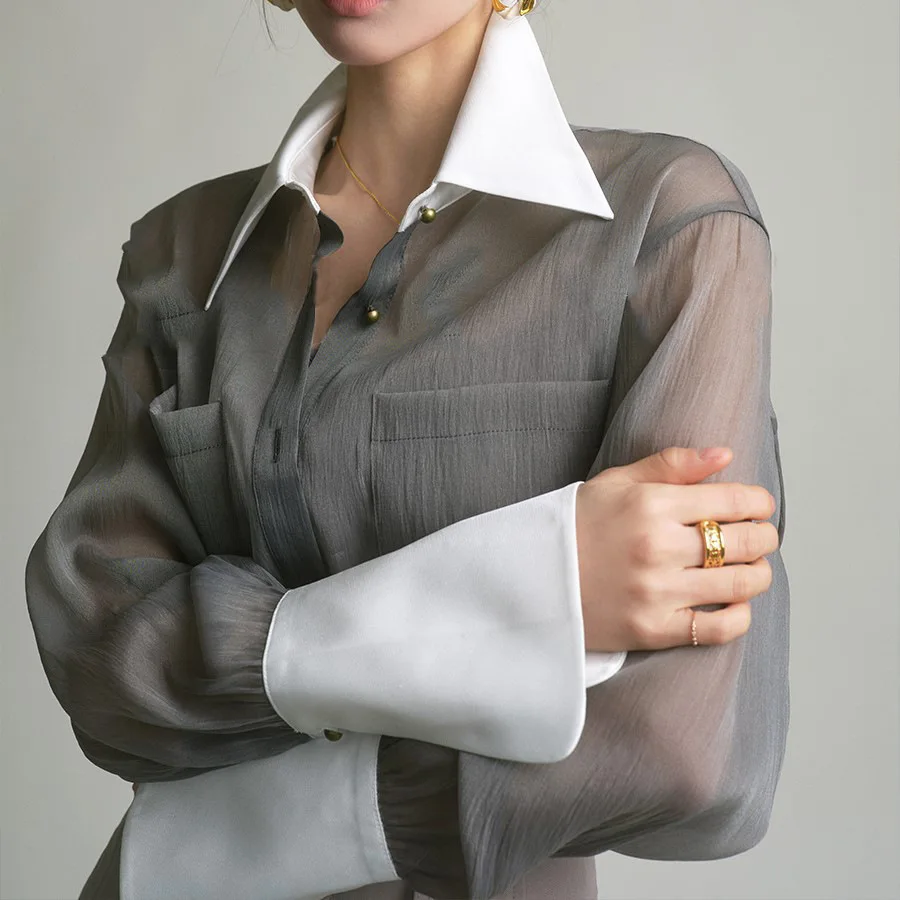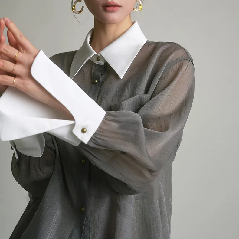 Wholesale 2026 Spring/Summer New Sunscreen Top Temperament Fragrant French Fashion Shirt Grey Retro Loose Shirt