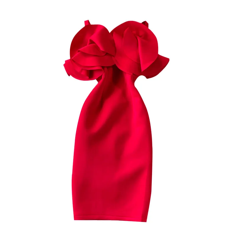 Wholesale 2026 Summer French Celebrity Dress Slim Light Luxury Banquet Ruffle One-shoulder Shoulder Bag Buttock Dress