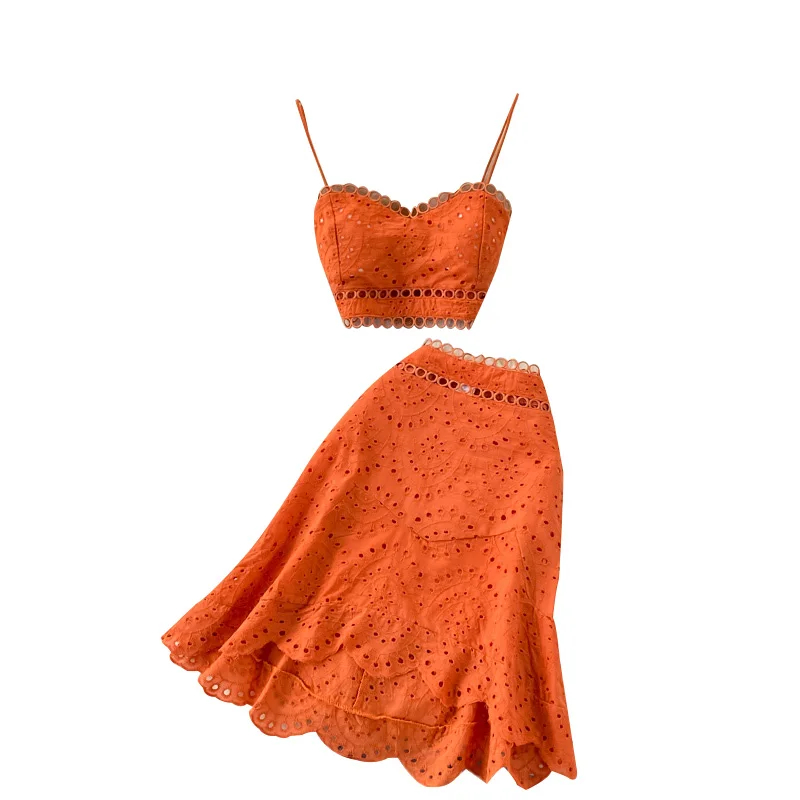 Wholesale 2026 Seaside Vacation Suit Summer New Backless Short Tube Top Sling Top High Waist Ruffle Skirt Women's Sets