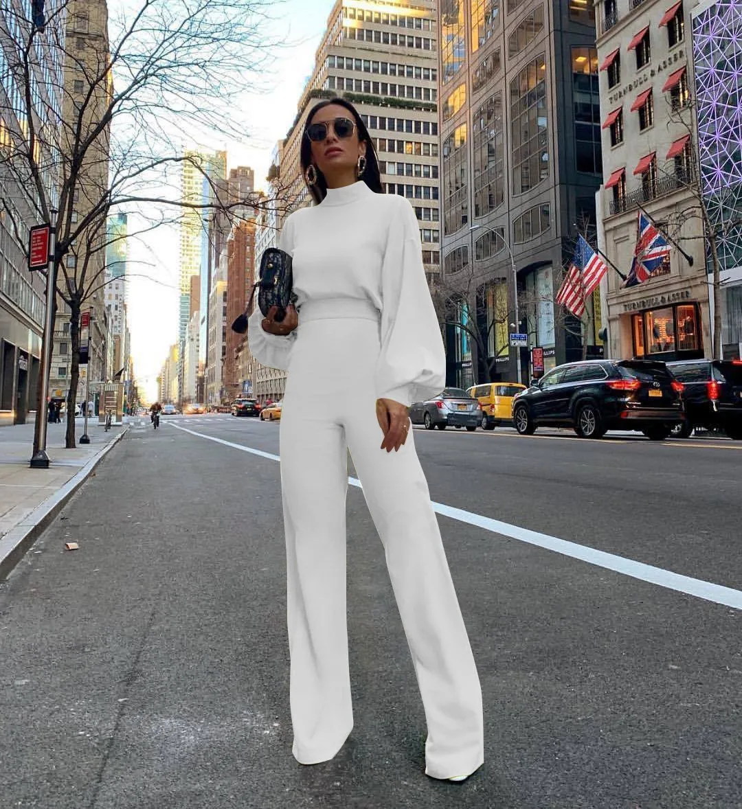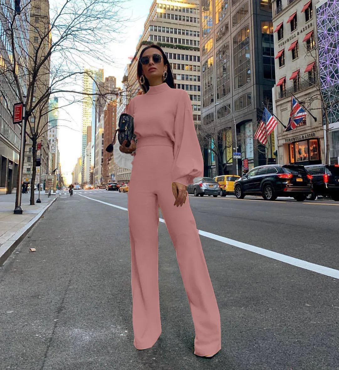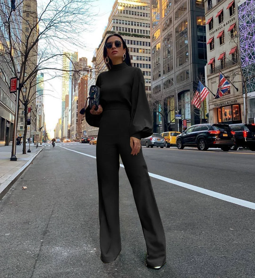 Wholesale 2026 Spring/Summer New Products Half Turtleneck Lantern Sleeves Simple and Capable Women's Jumpsuits