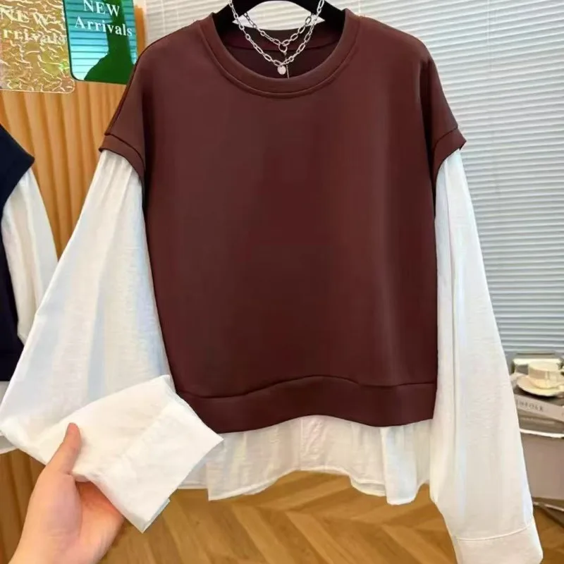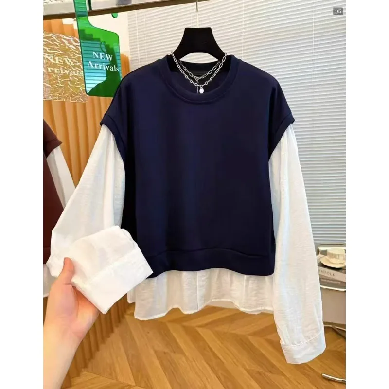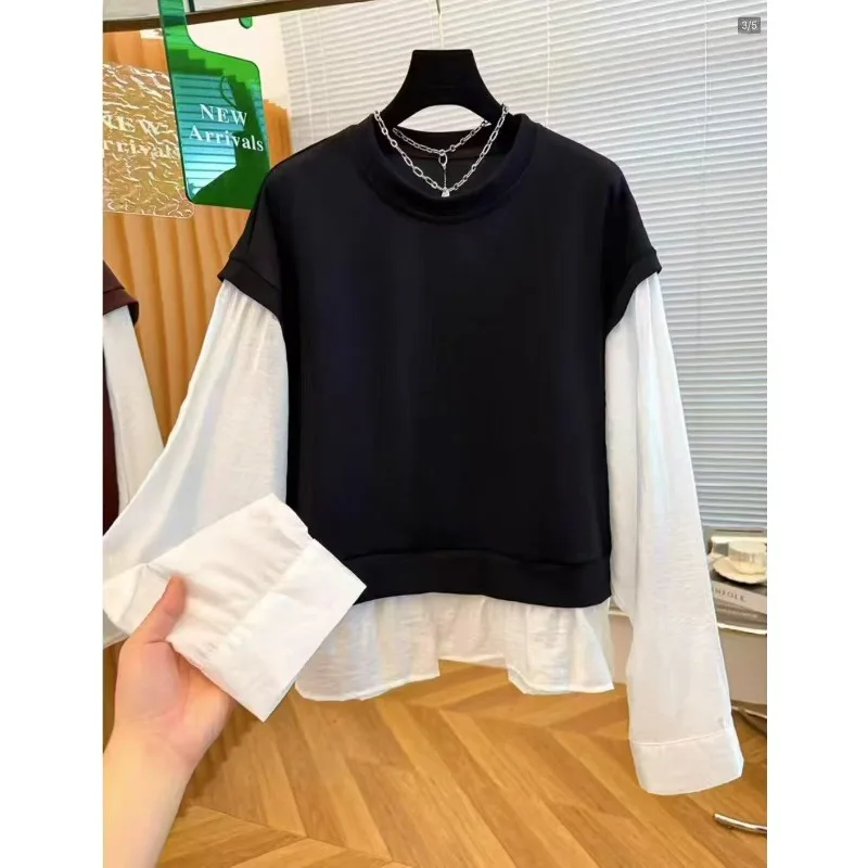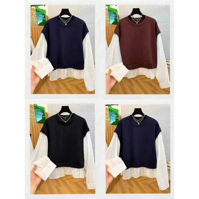 Wholesale Autumn 2026 New Fashion Casual Fake Two-piece Crew Neck Sweater Long Sleeve Simple Commuter Splicing Women's Shirt