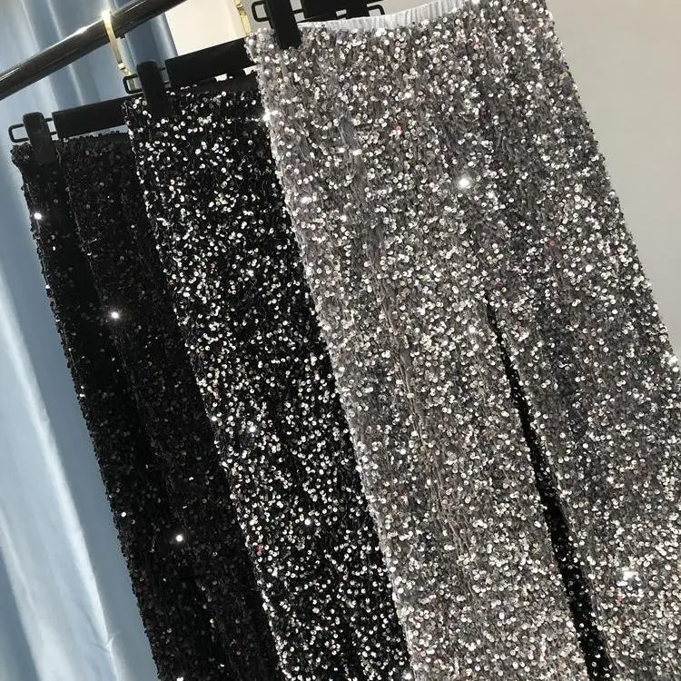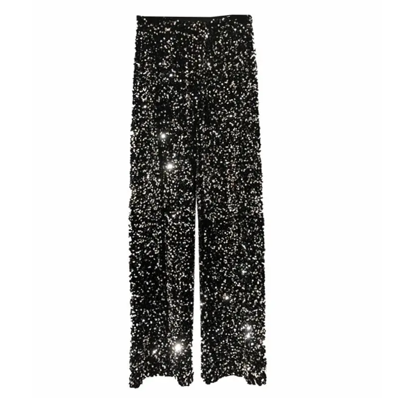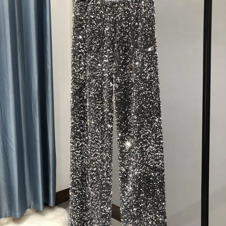 Wholesale 2026 Autumn and Winter Thickened Korean Velvet Sequins Wide Leg Pants With a Long Shiny Straight Leg Pants