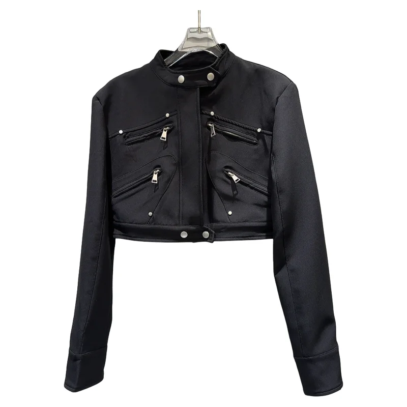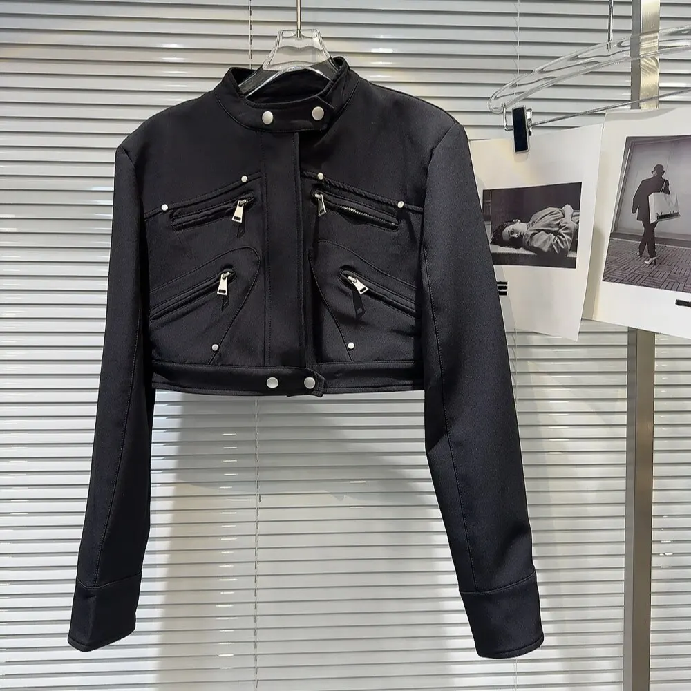 Wholesale Spring 2026 New Fashion Elegance Casual Temperament Metal Zipper Shoulder Padded Stand-Up Jacket Short Ladies Jacket