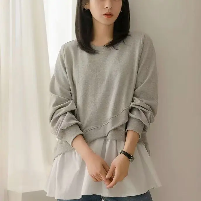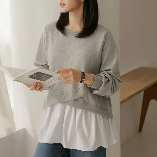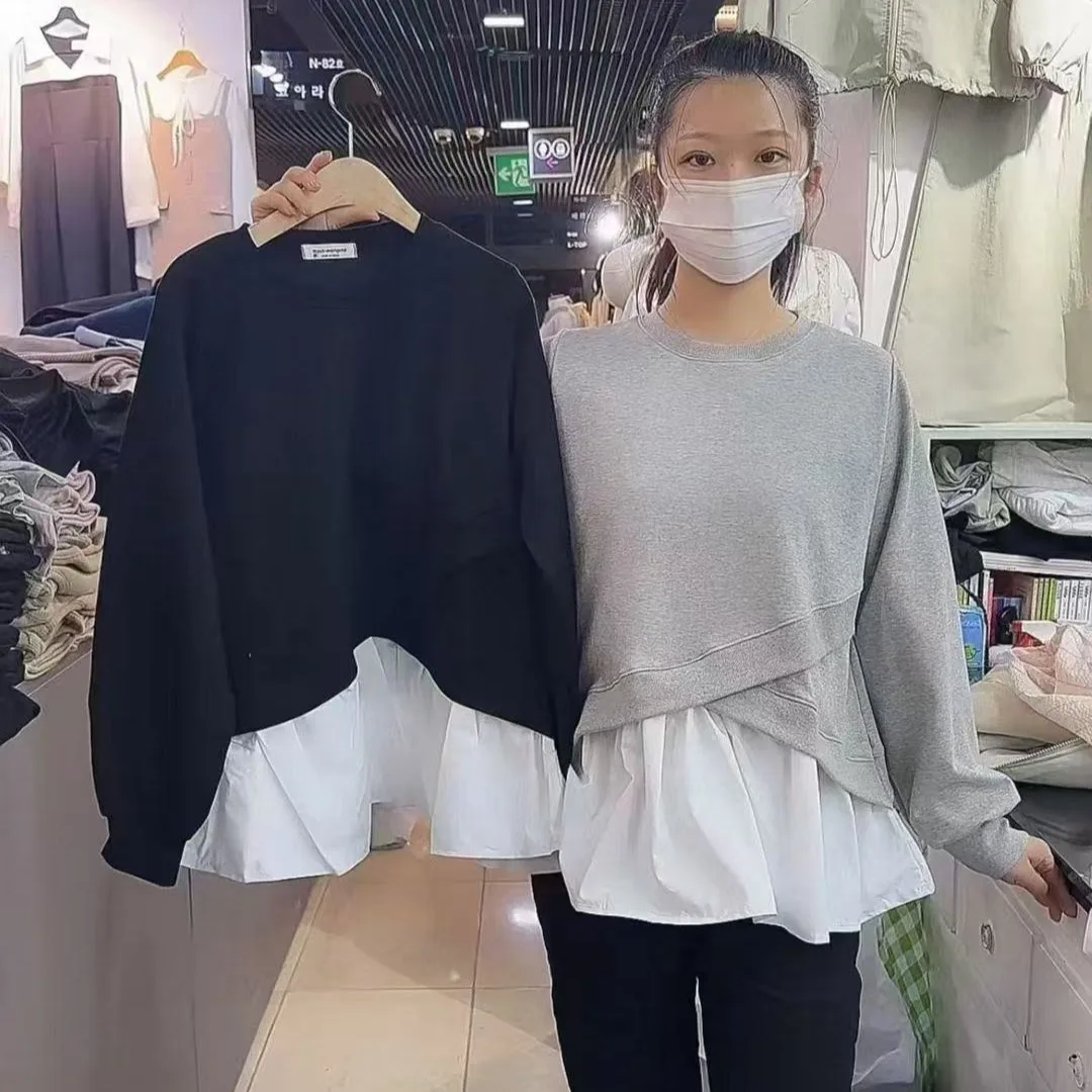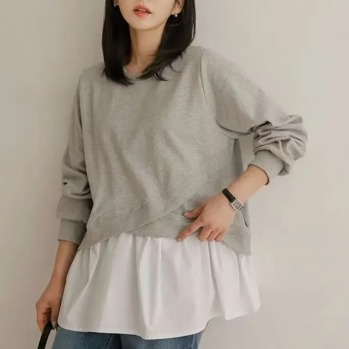 Wholesale Autumn 2026 New Fashion Casual Loose Splicing Crew Neck Pullover Long Sleeve Women's Sweater and Hoodie