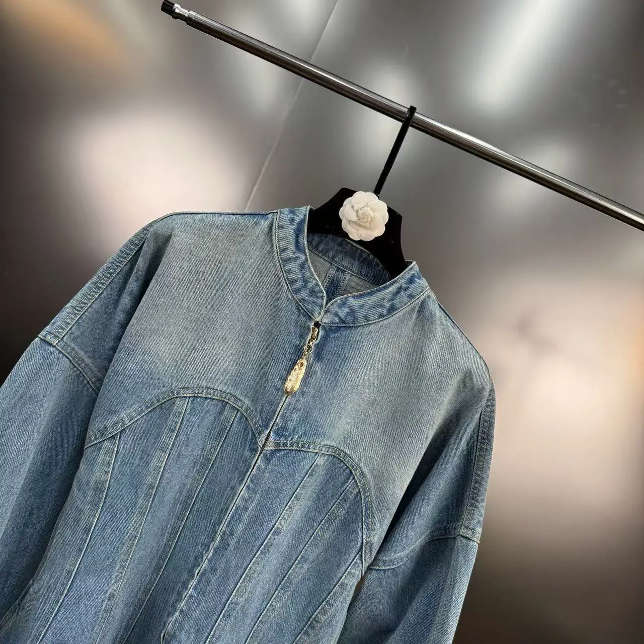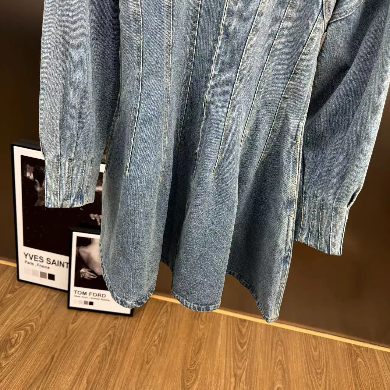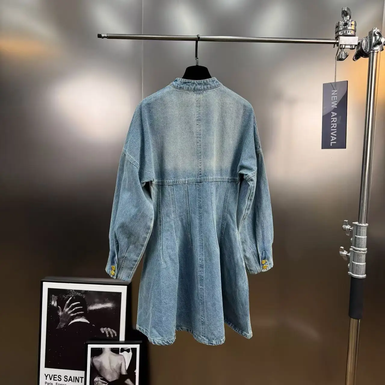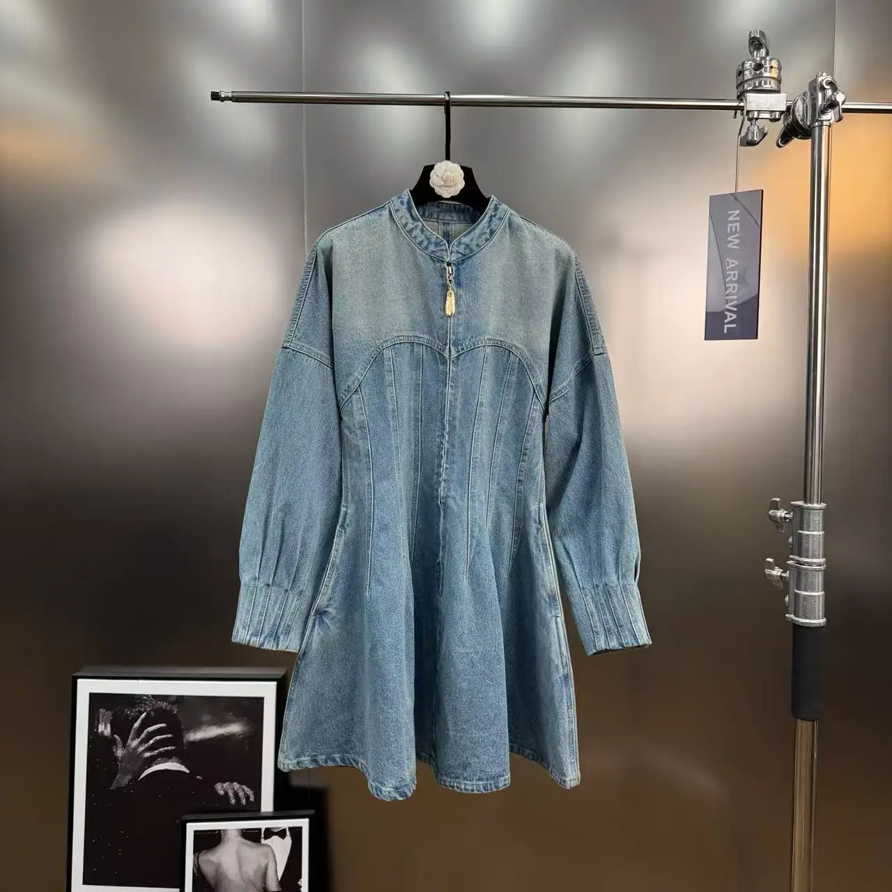 Wholesale Autumn 2026 New Fashion Elegant Casual Temperament Personality Pinch Pleated Waist Long Sleeve Denim Ladies Dress