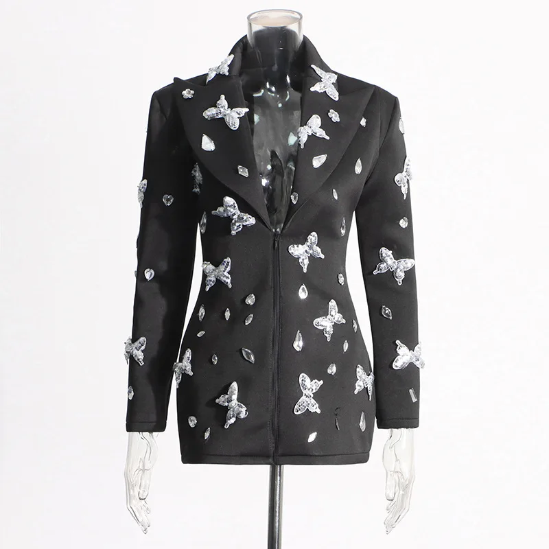 Wholesale Fall 2026 New Fashion Elegant Sexy Butterfly Sequins Full Diamond Long Sleeve Women's Dress