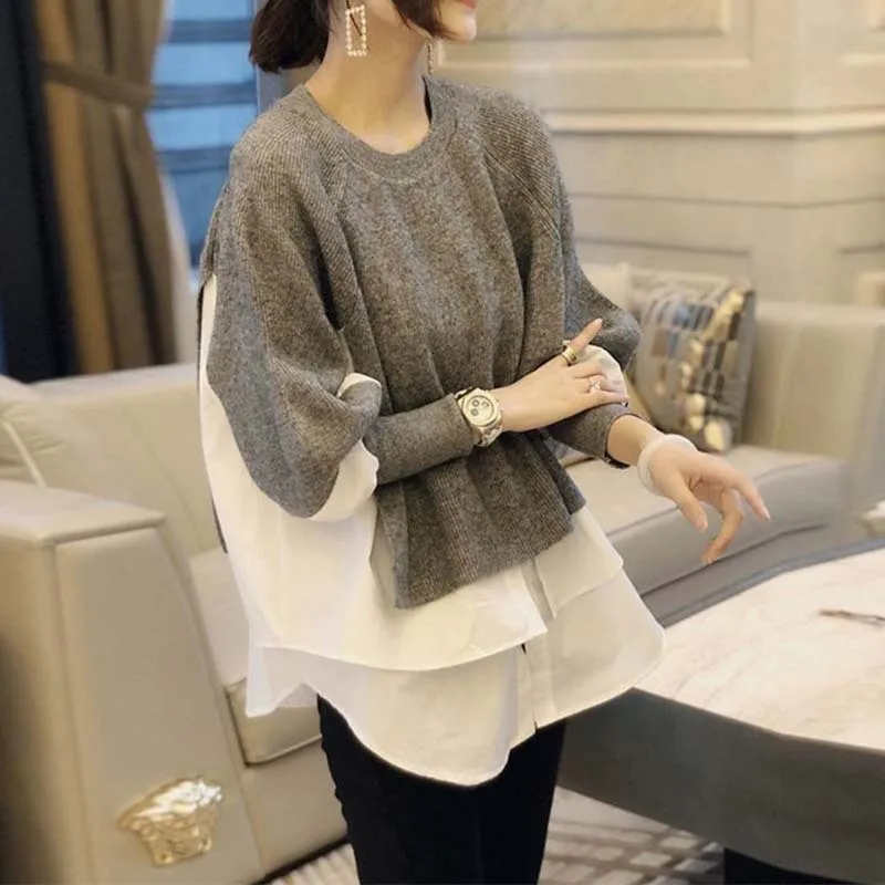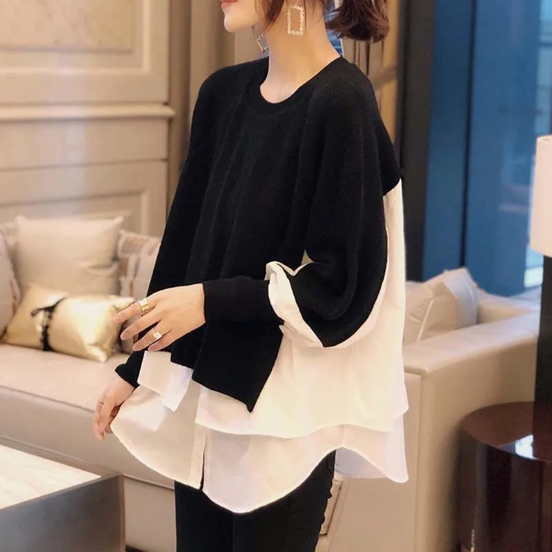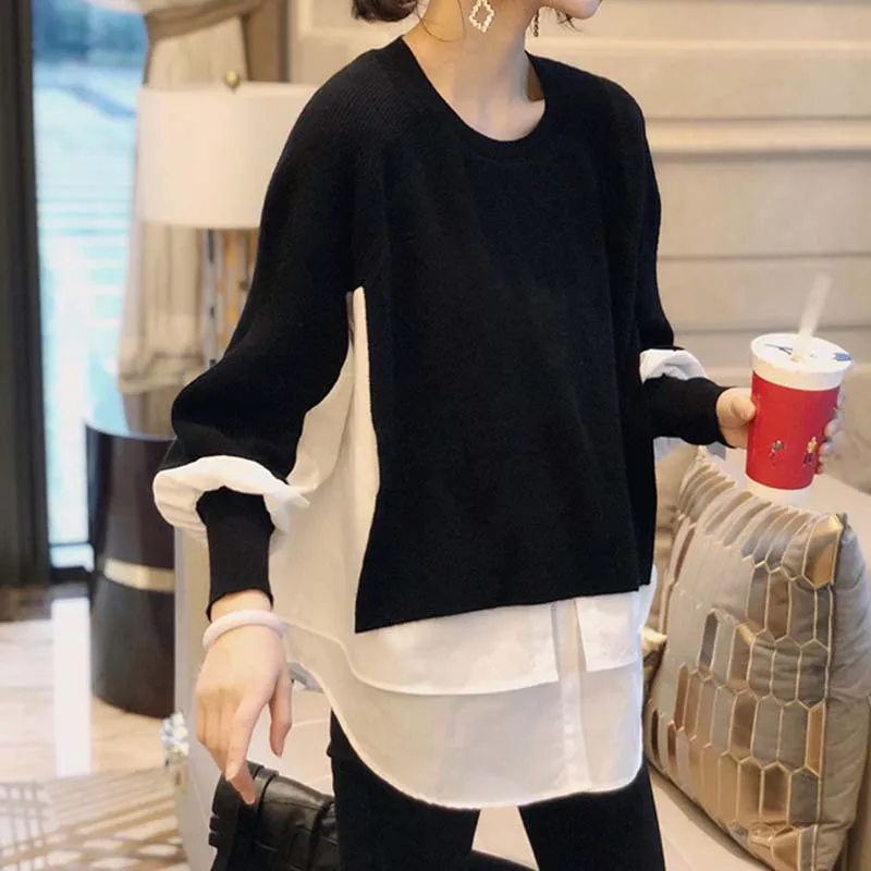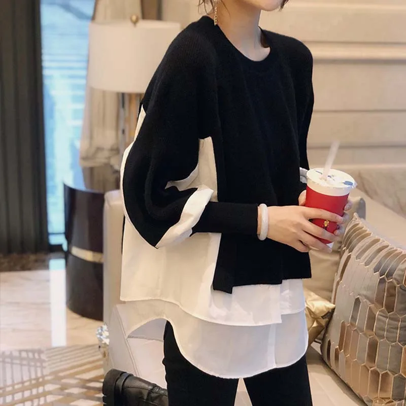 Wholesale 2026 Autumn and Winter Layered Sweater Stitching Shirt Two-piece Suit Female Foreign Style Knitted Sweater