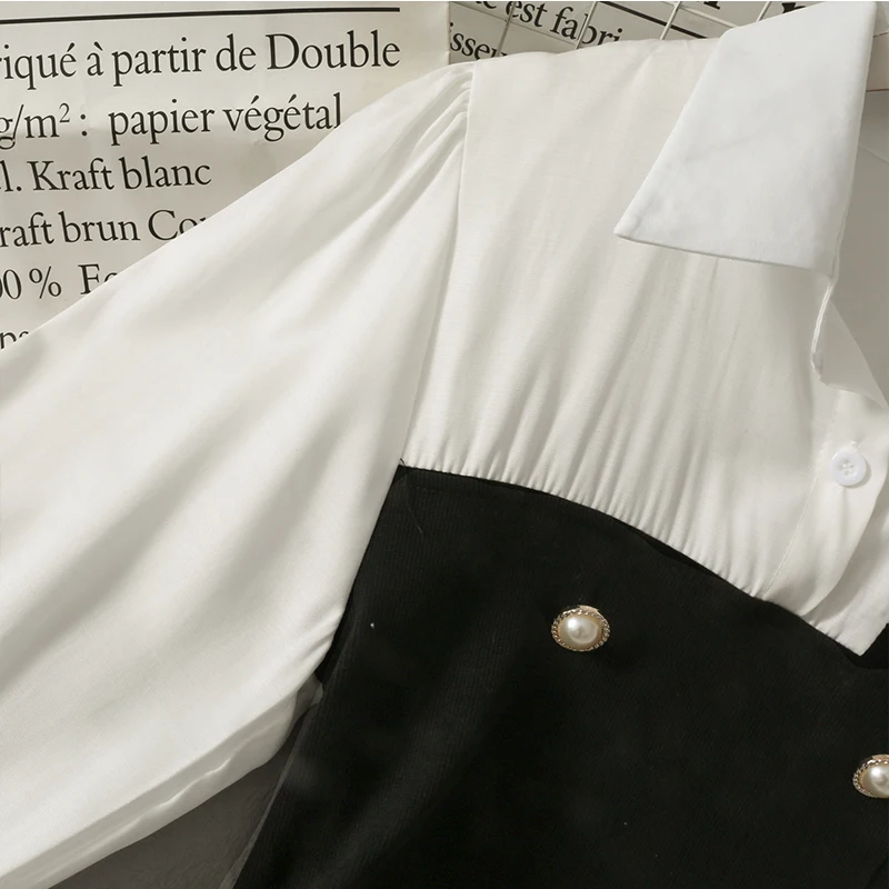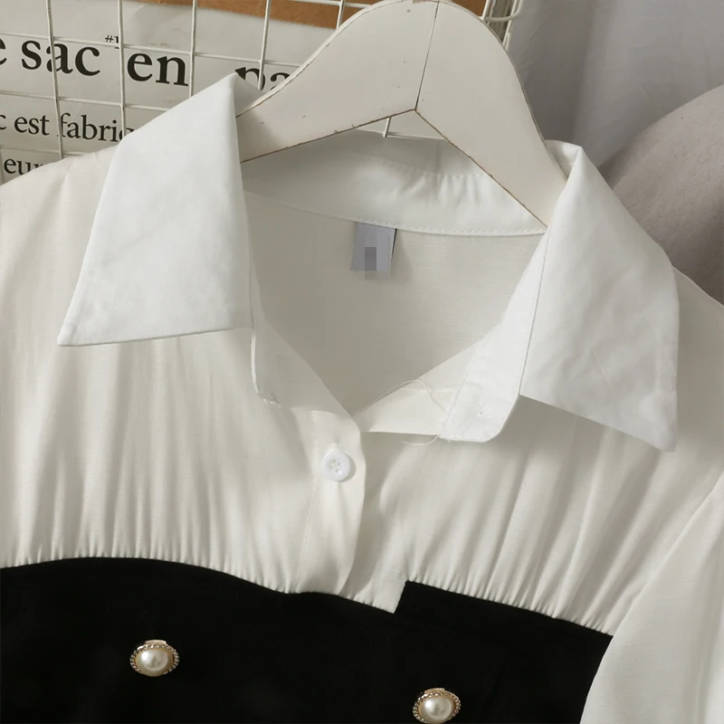 Wholesale French Minority Color Contrast Splicing Double Breasted Waist Shirt Women 2026 New Slim Long Sleeve Bottomed Shirt