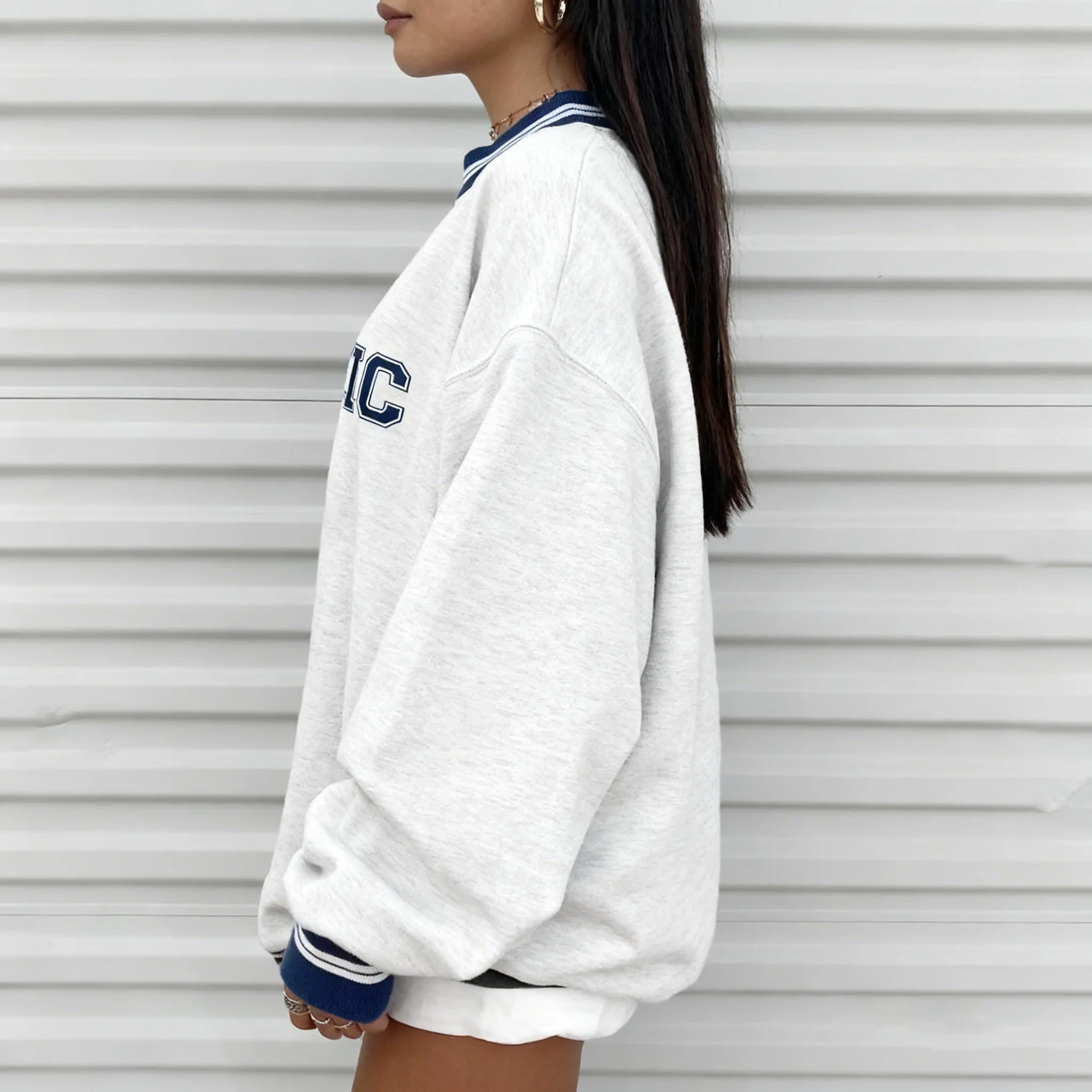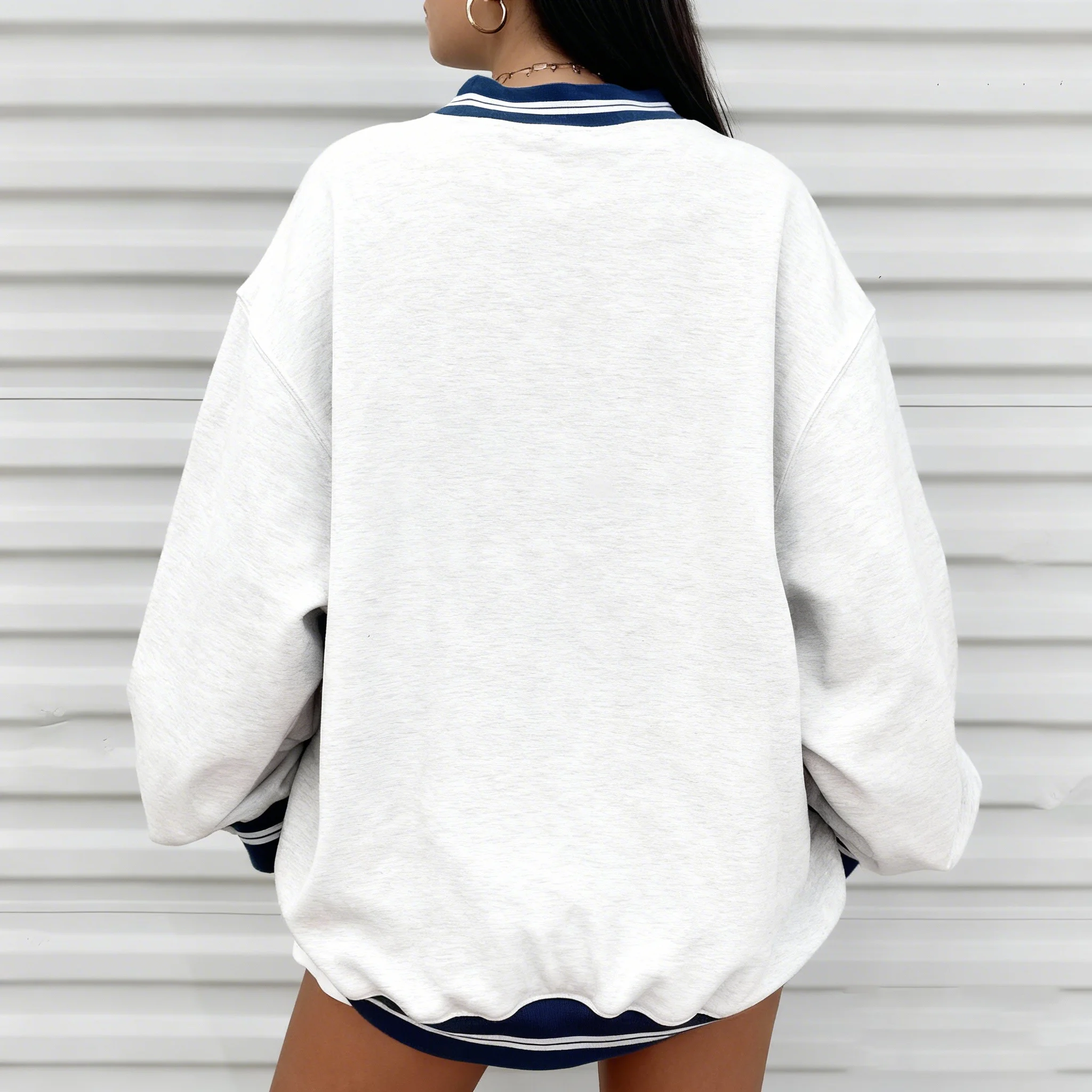 Custom logo Screen Print Cotton Striped Rib Pullover Oversized Hooded Sweatshirt Top Leisure Hoodies Women Crew Neck Sweatshirt