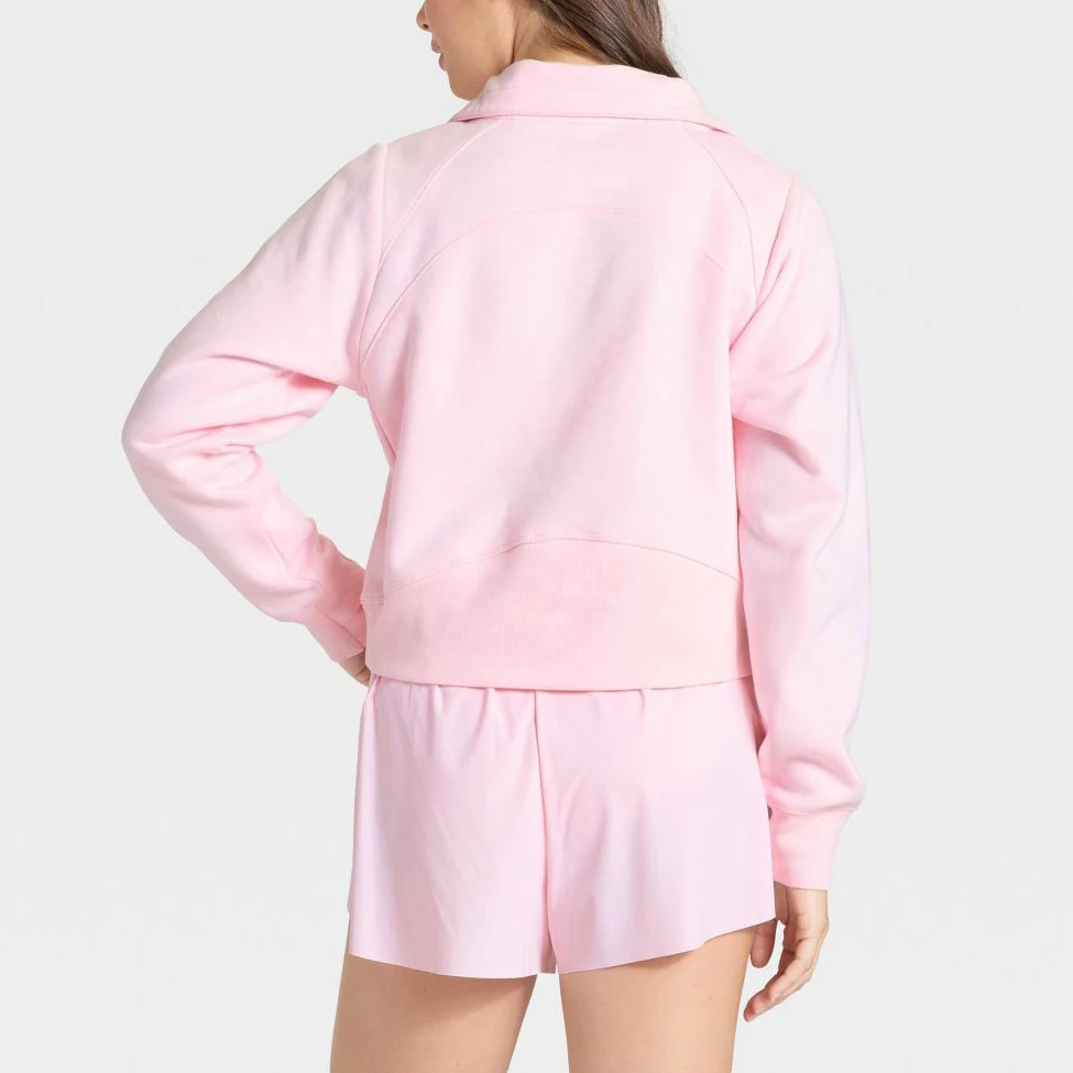 Custom Printed Pink Solid Color Winter/Autumn Pullover Ribbed Cuffs Hemline Stand Collar Full Zip Sweatshirt for Women Sport
