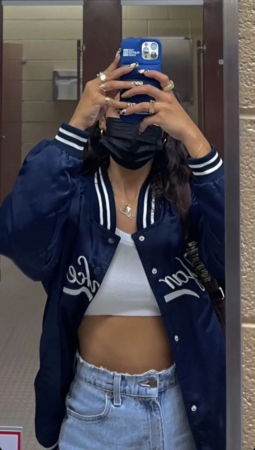 Custom Logo Fabric Color Oversized Navy Varsity Jacket Baseball Jacket Women Streetwear Letter Patch Style Rib Collar Cuff Hem
