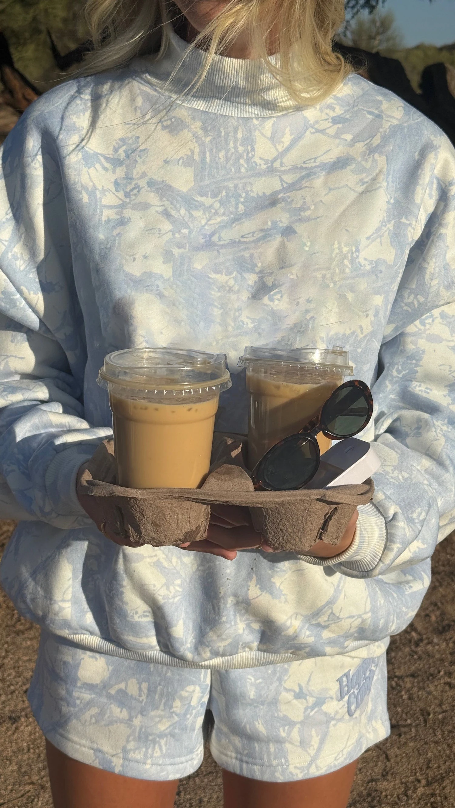 Custom Women Blue Camo Tie Dye Mock Neck Sweatshirt and Shorts Set Two Piece Casual Lounge Outfit Summer Streetwear Tracksuit