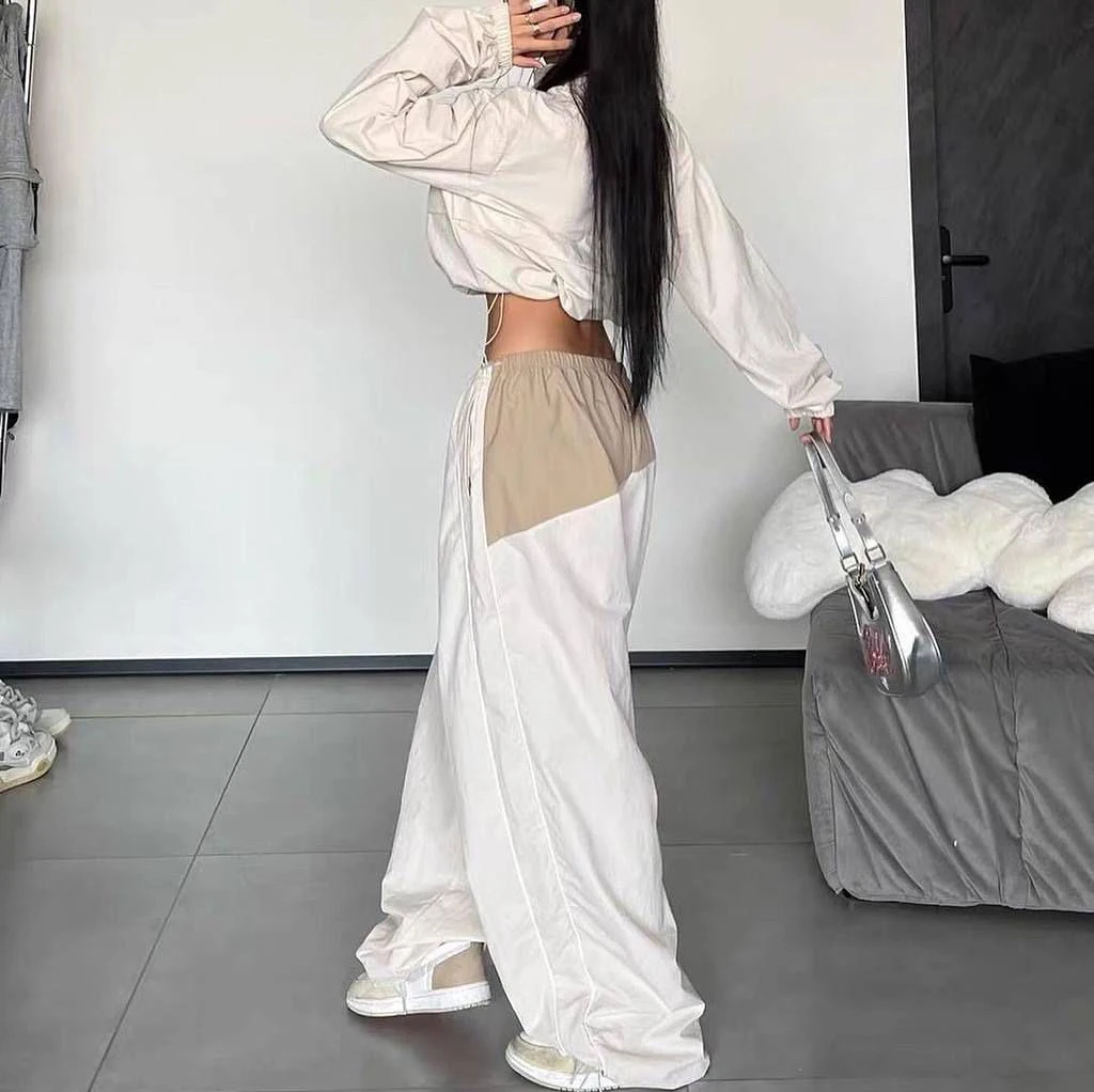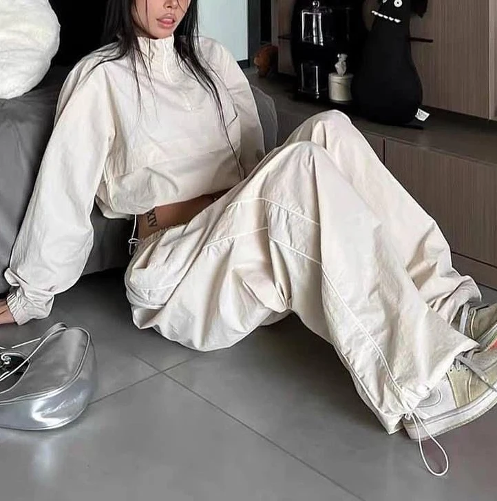 2025 Custom Women's Windbreaker Tracksuit 2-Piece Set with Short Length Sweatpants Striped Hoodie Custom Drawstring Pants Set