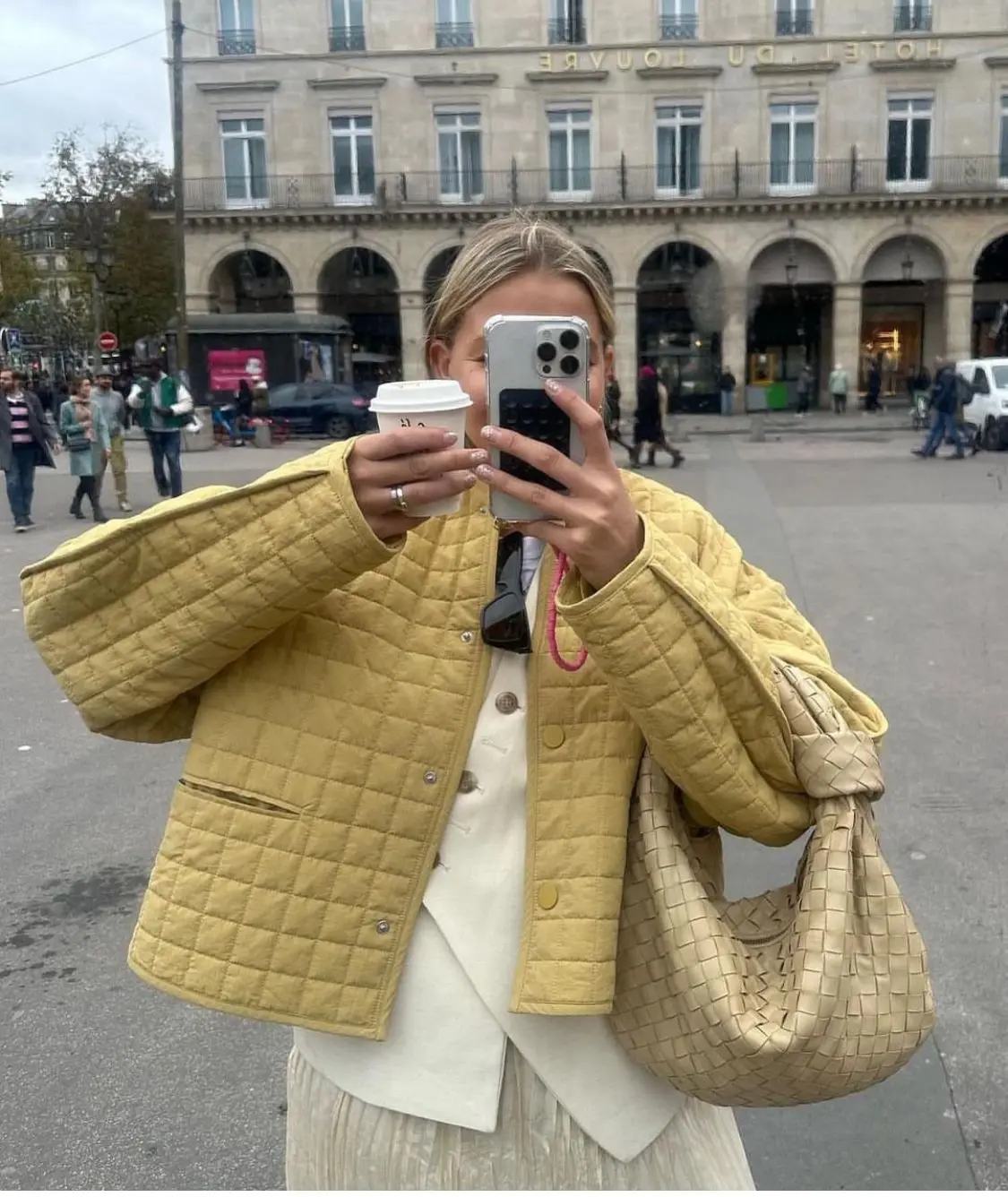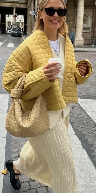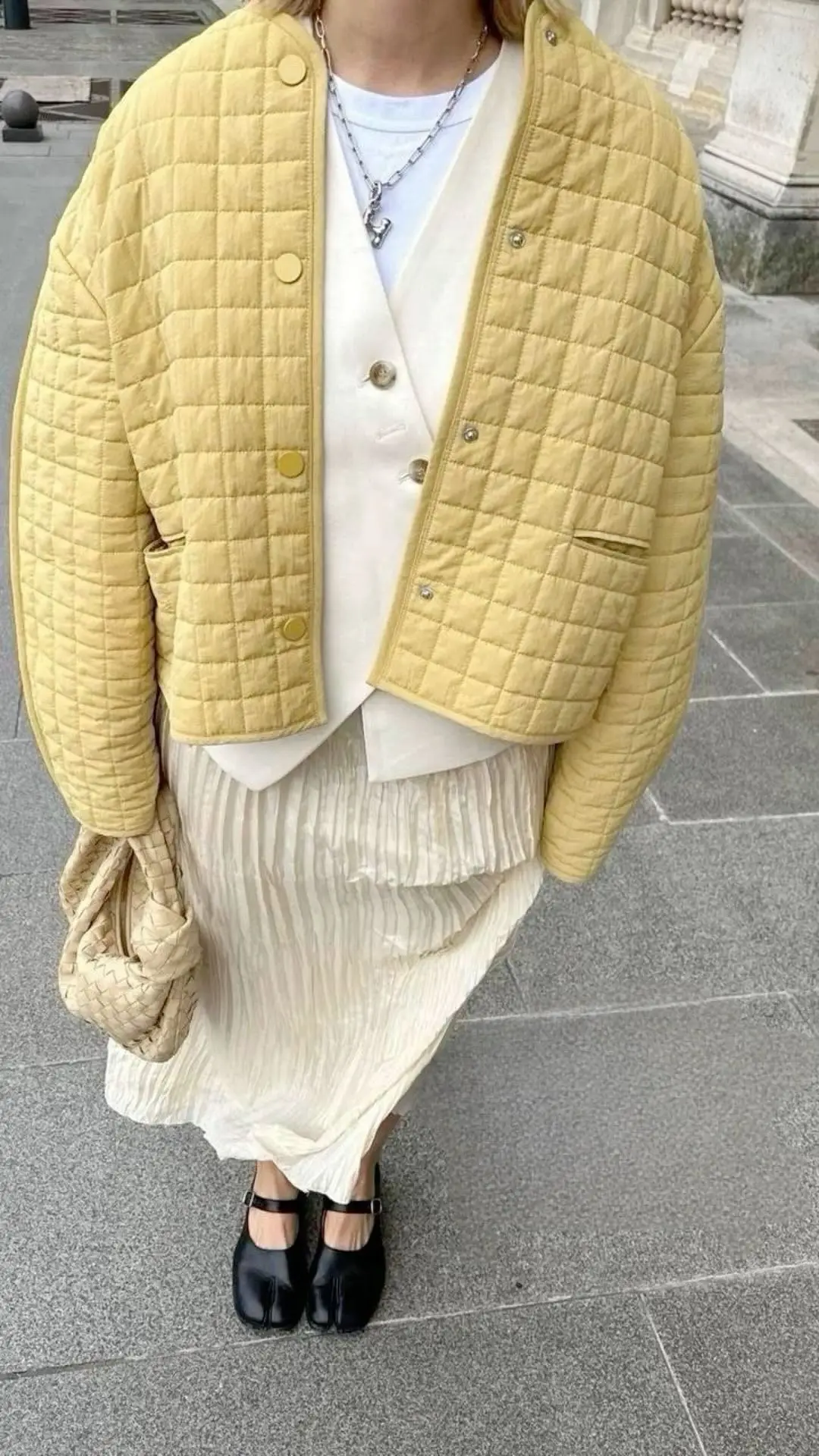 Custom Logo Yellow Quilted Short Jacket Lightweight Square Quilt Snap Button Outerwear Casual Boxy Fit Quilted Jacket for Women
