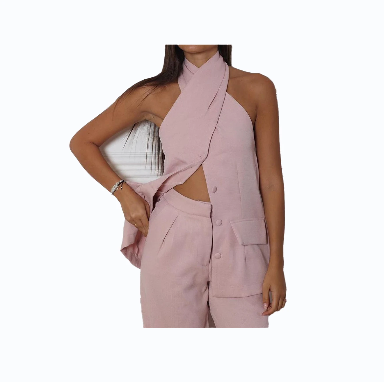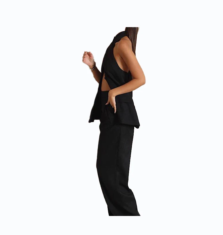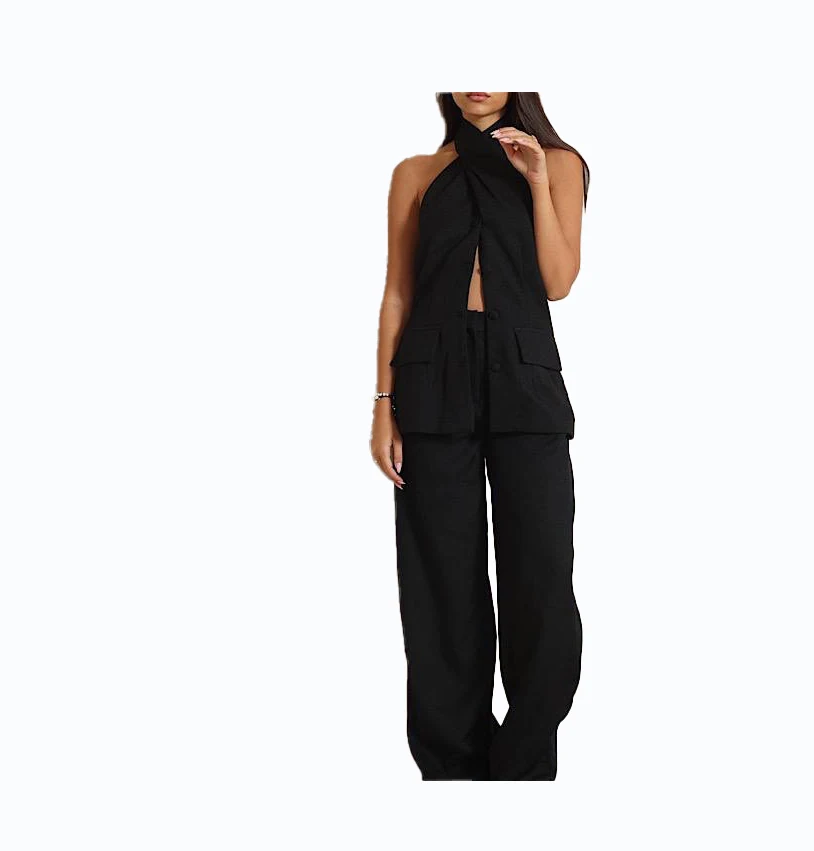 Wholesale Women's Casual Two Piece Knitting Sets 2023 Spring Solid Above Knee Length Long Tops for Suits