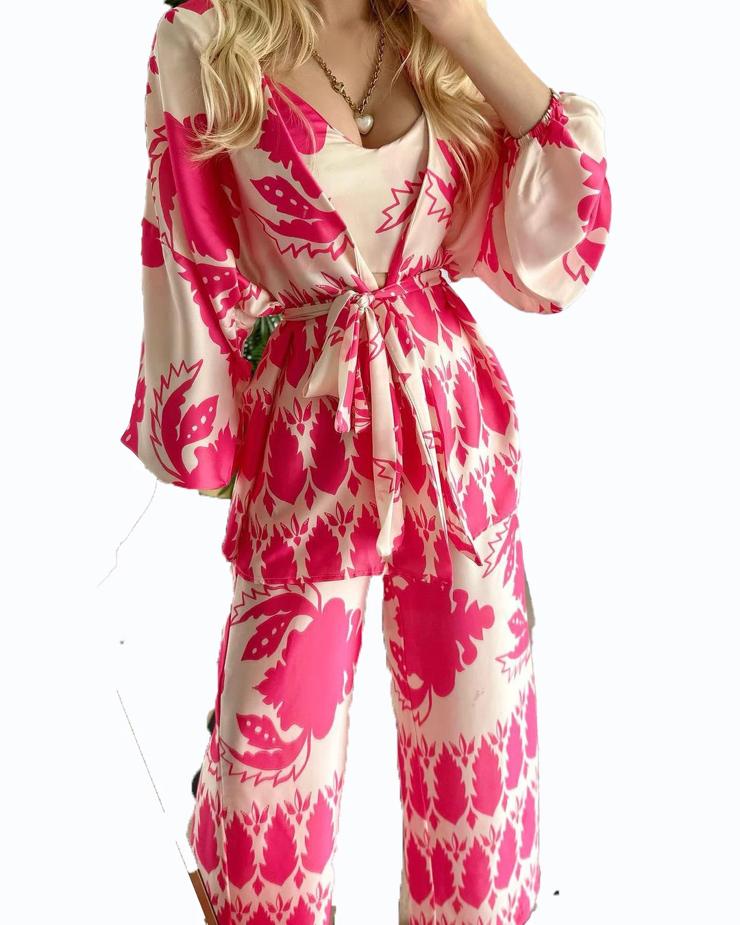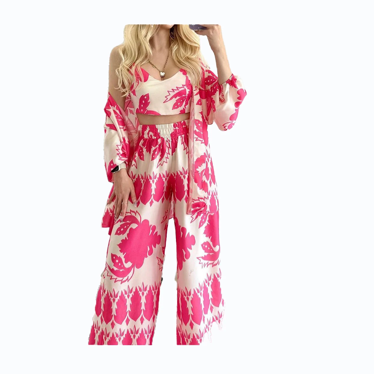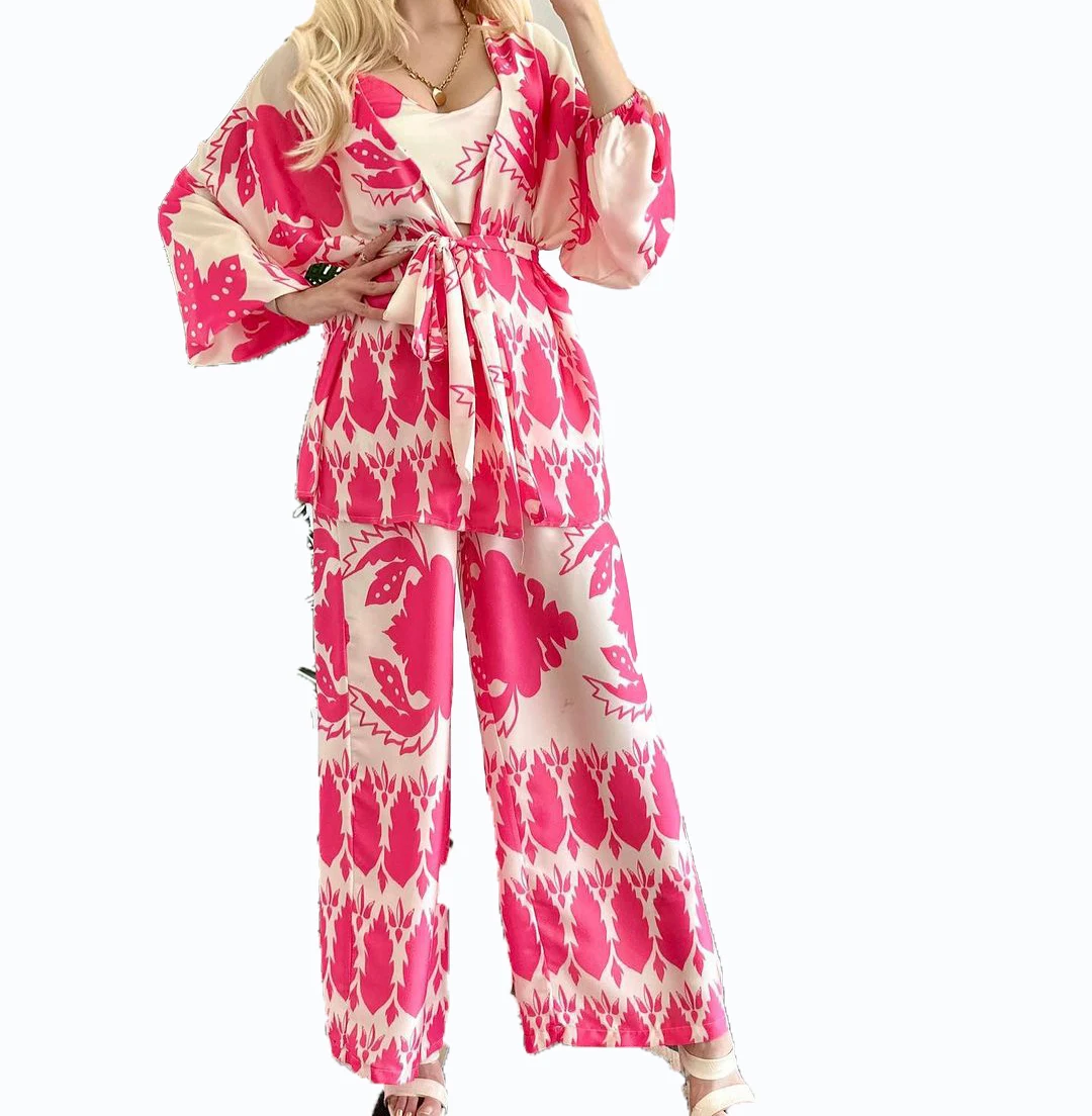 Casual Fall Two Piece Set Womens Clothing Plain Loose Polyester Wide Leg Pants Set Women