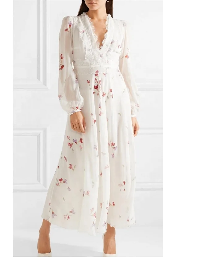 ZYHT 15325 Wholesale Spring Trendy Fashion Long Sleeve Dinner White Lace Black Velvet Elegant Party Dress Women Evening Dresses