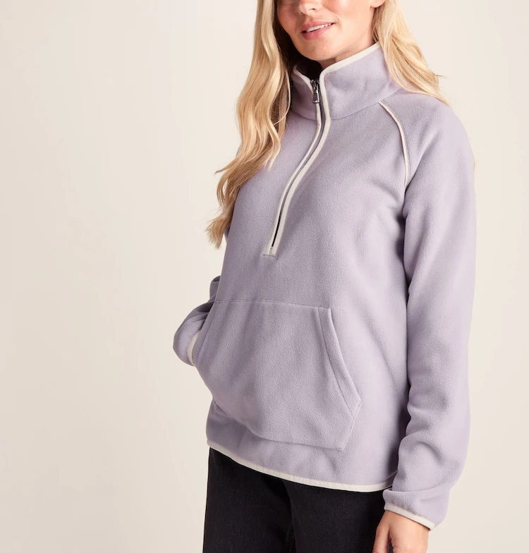 High Quality Lavender Fleece Stand Half Zip Hoodie Kangaroo Pocket Women Winter Soft Comfortable Pullover Sweatshirt Custom Logo