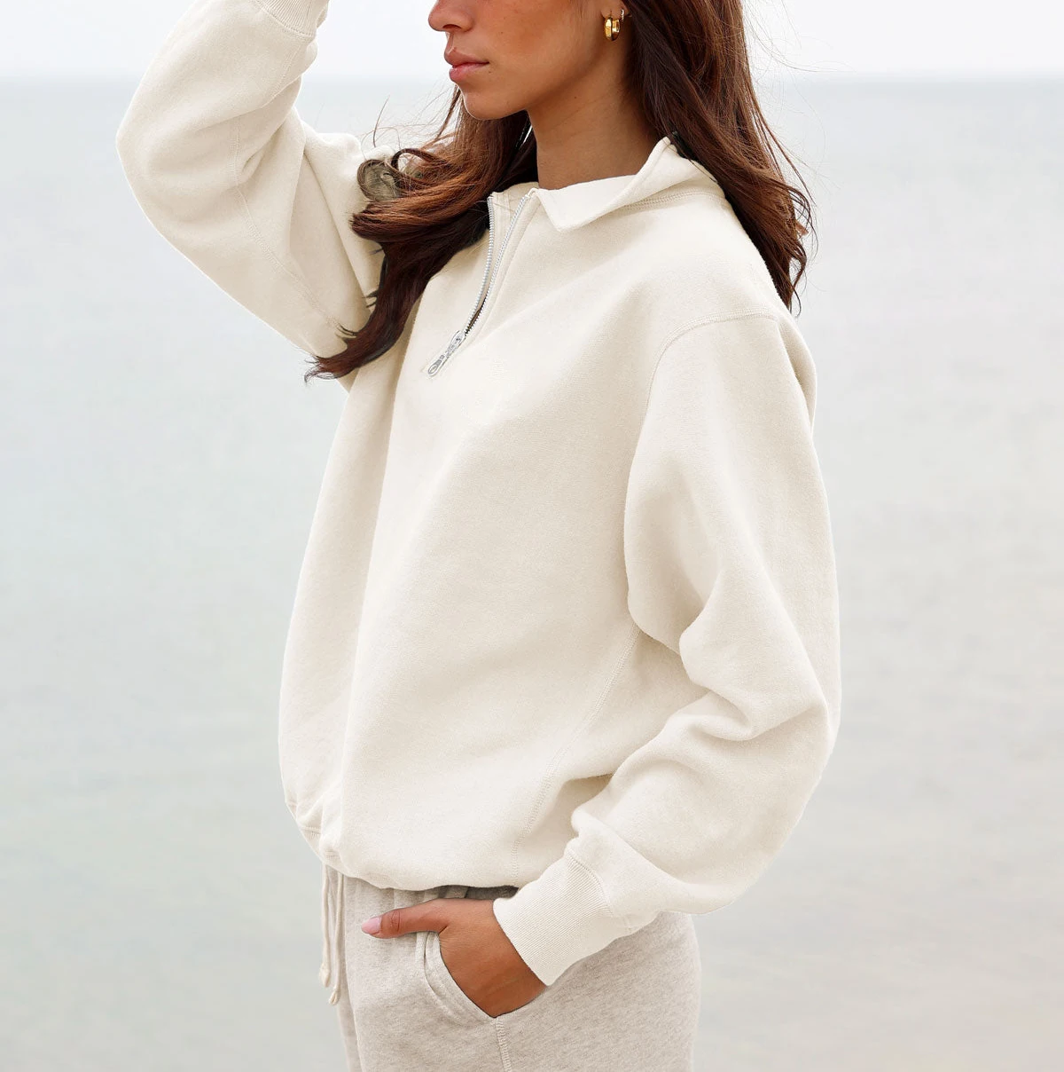 New Trend Outerwear Stand Winter Loose Fit Comfortable Half Zip Hoodie Ribbed Cuffs Women Casual Streetwear Pullover Sweatshirt