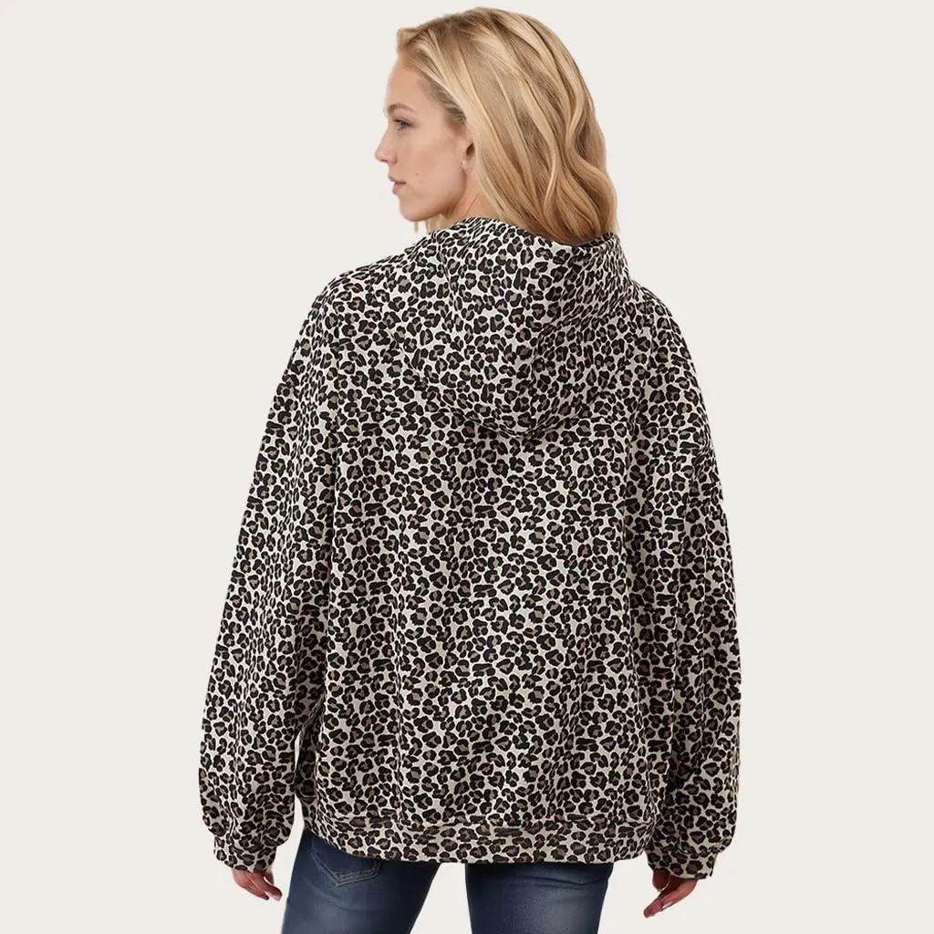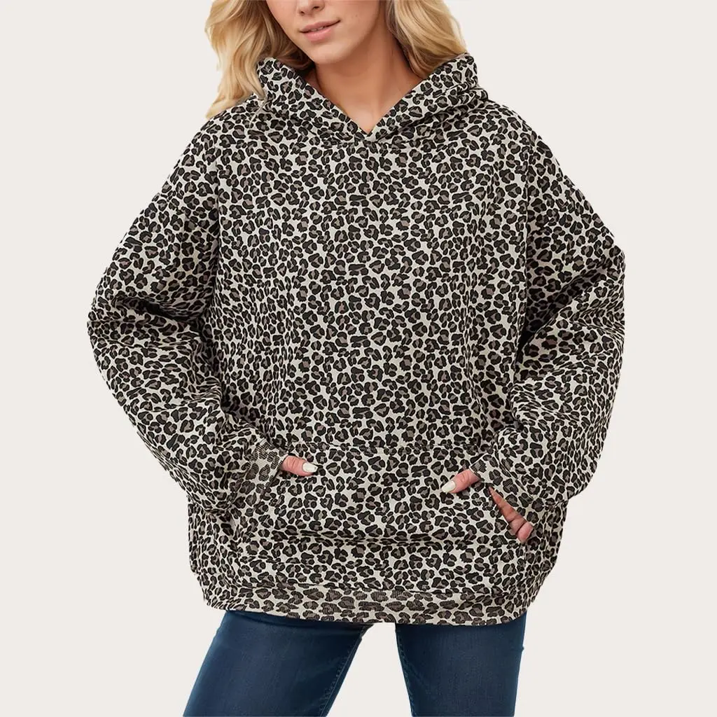Custom Embroidered Leopard Print Women's Oversized Hoodie with Animal Pattern Winter/Autumn Trendy Streetwear Sweatshirt