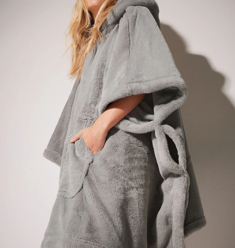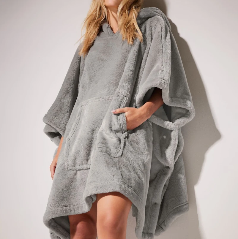 Wholesale Custom Embroidered Logo Gray Solid Color Cozy Pullover Fleece Oversized Long Hoodie Winter Blanket Women Home Wear