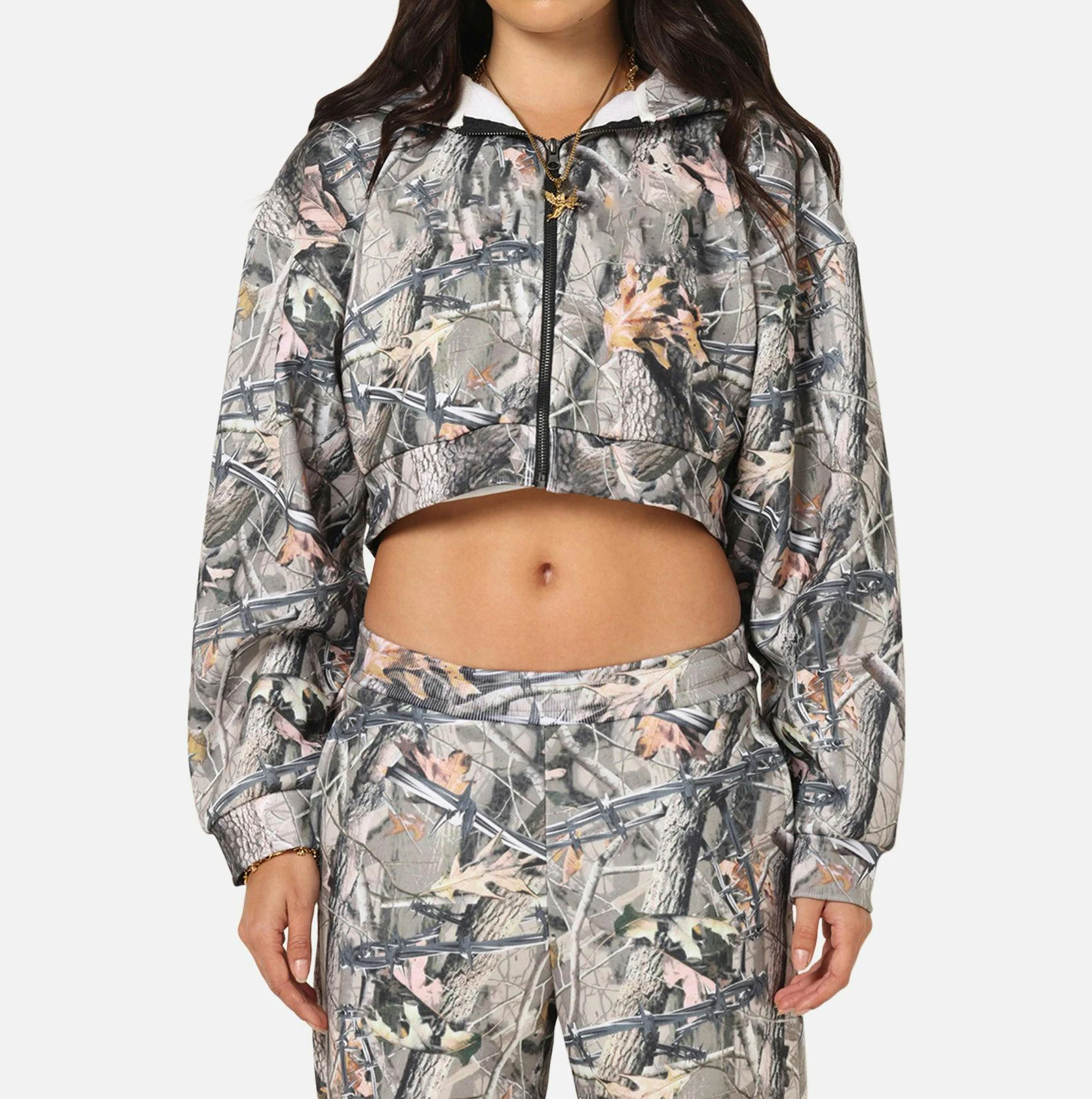 Women's 100% Cotton Camo Hoodie with Zip Front Pullover Custom Embroidered Logo Street Wear Winter Hooded Collar Wholesale