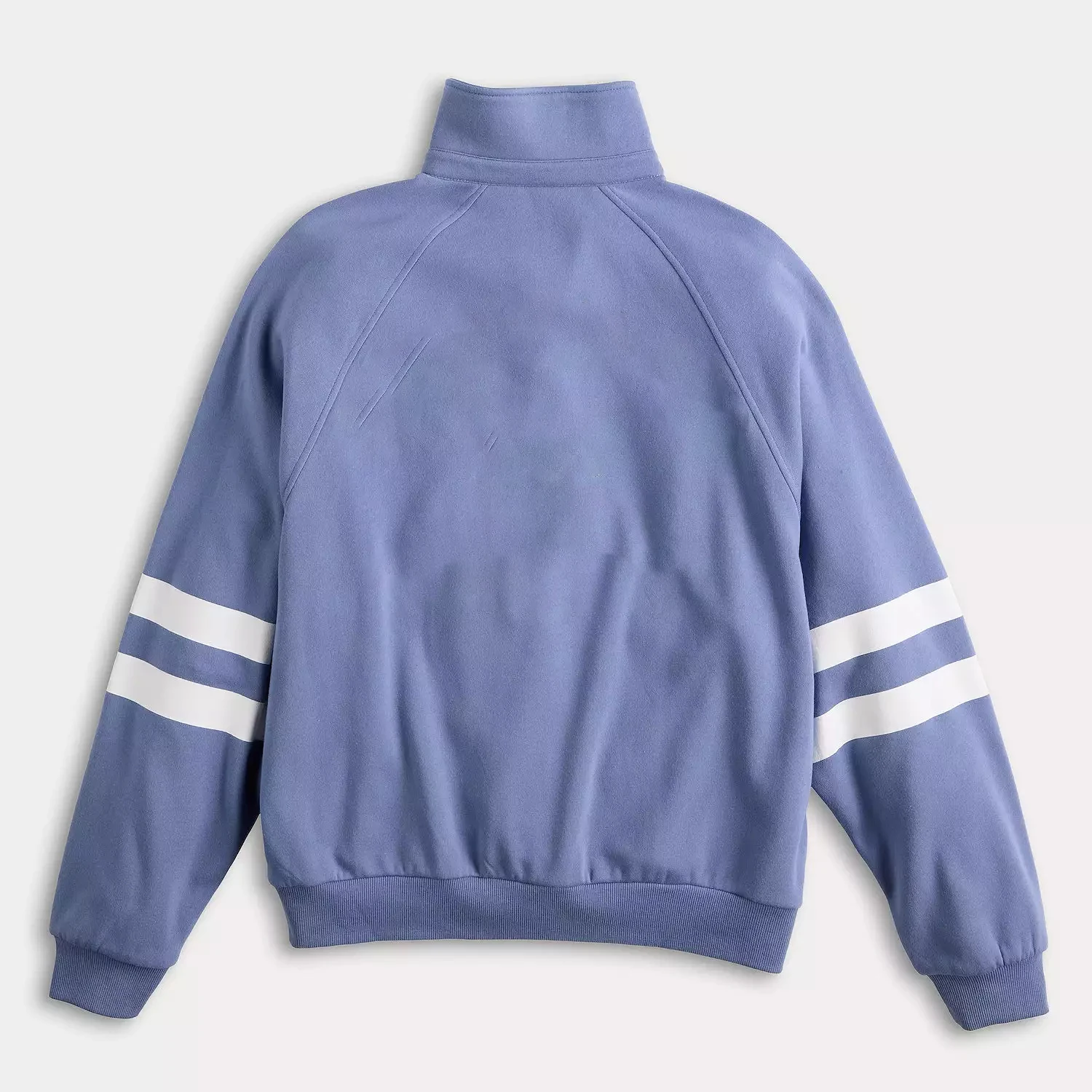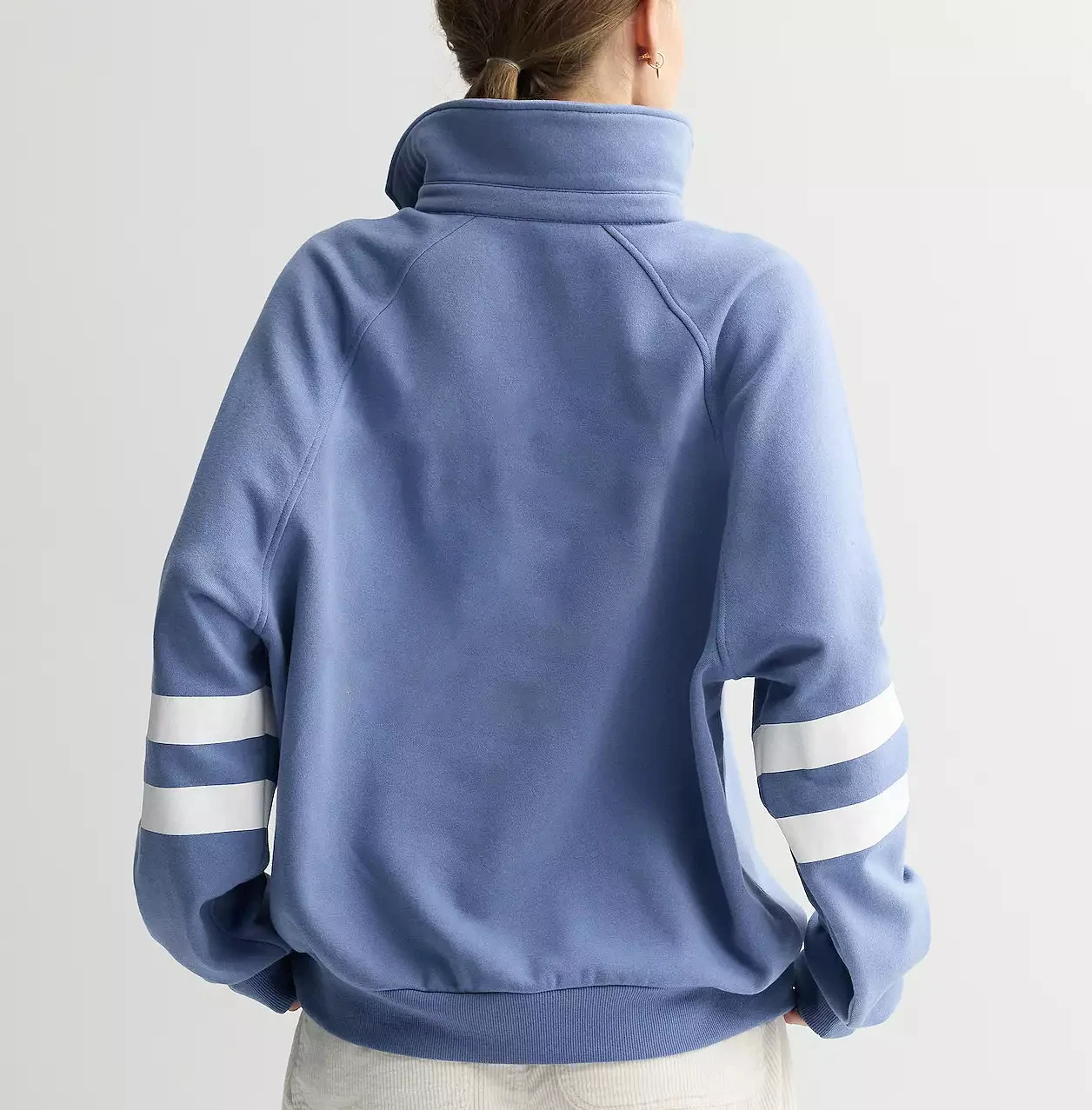 OEM High Quality Women's Sweatshirt Striped Sleeves Ribbed Cuffs Button Stand Collar Pullover Printed Hemline Autumn/Winter