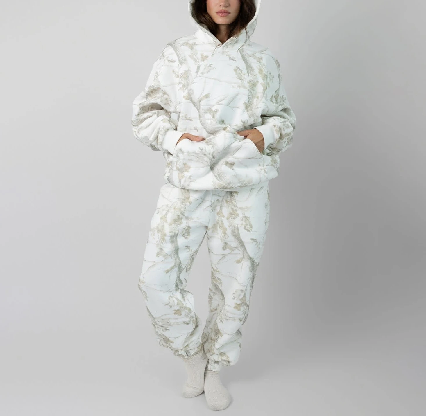 Custom logo High Quality Fall and Winter Drop Shoulder Pullover with Kangaroo Pocket Camo Oversized Hoodie for Women Casual Wear