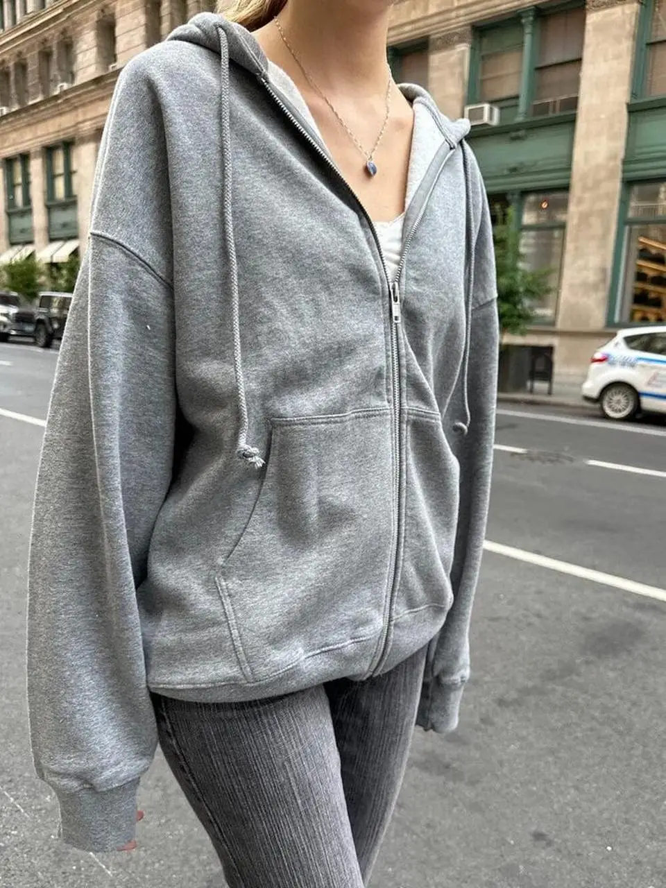 Custom logo Women Daily Wear Grey Soild Color Pullover with Drawstring Full Zip up Hoodie and Sweatshirt
