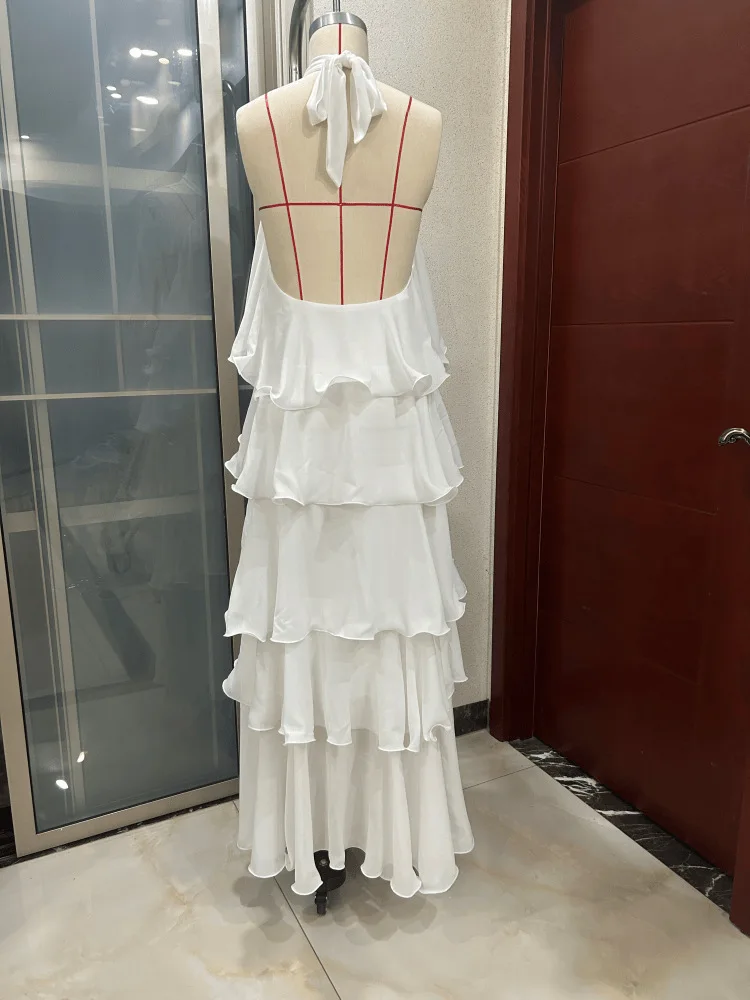 European American Women's Chiffon Woven Halter Neck Cascading Ruffle Spring Casual Seaside Holiday Style Multi-layer Cake Skirt