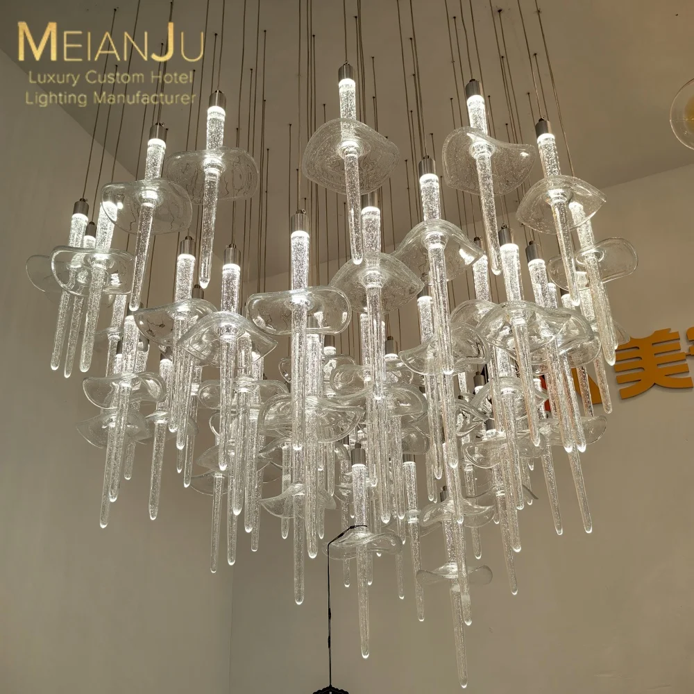Wedding Hall Chandelier Hotel Hanging Pendant Light Customized Amber Crystal Chandelier Lighting for Lobby