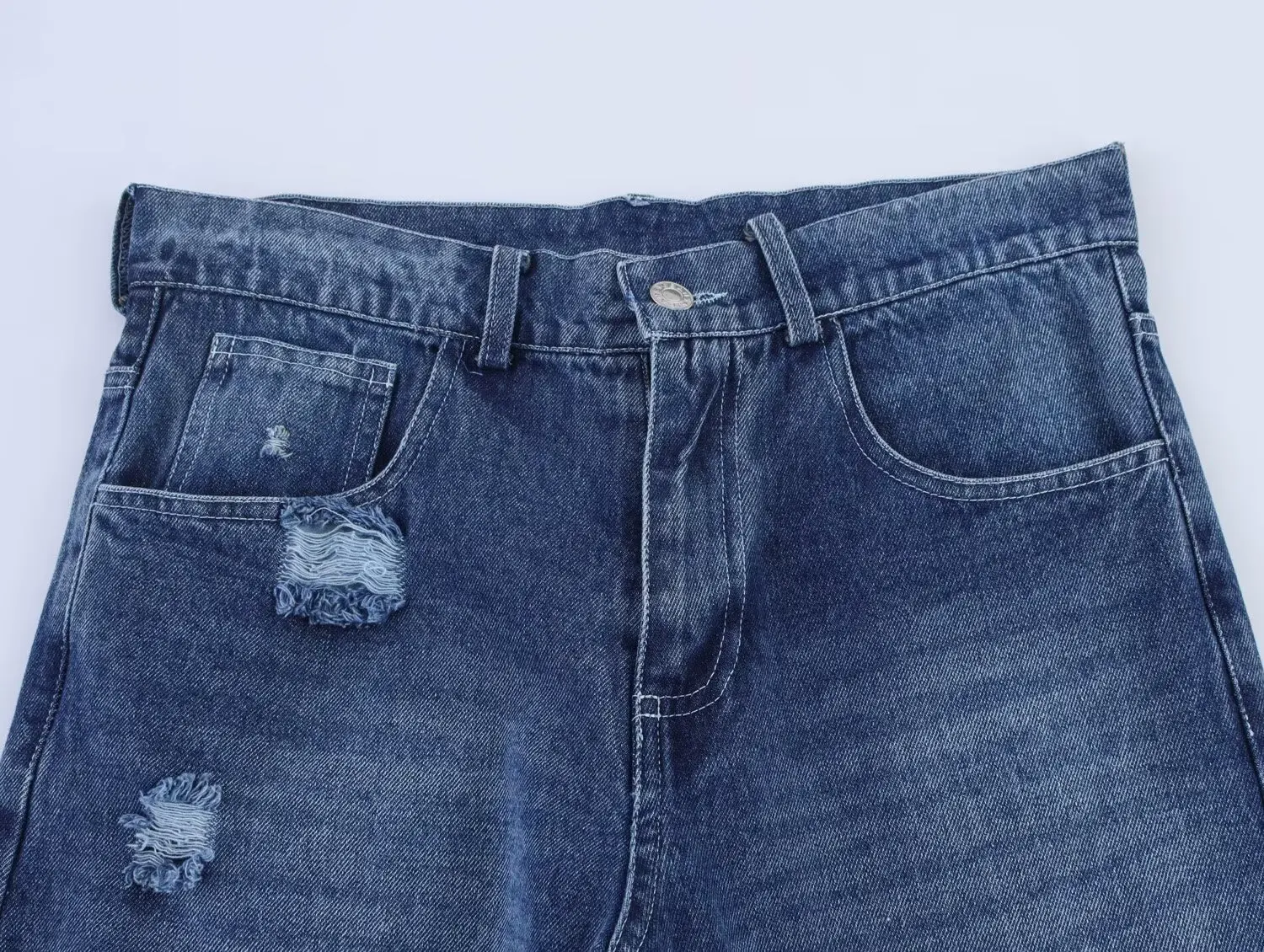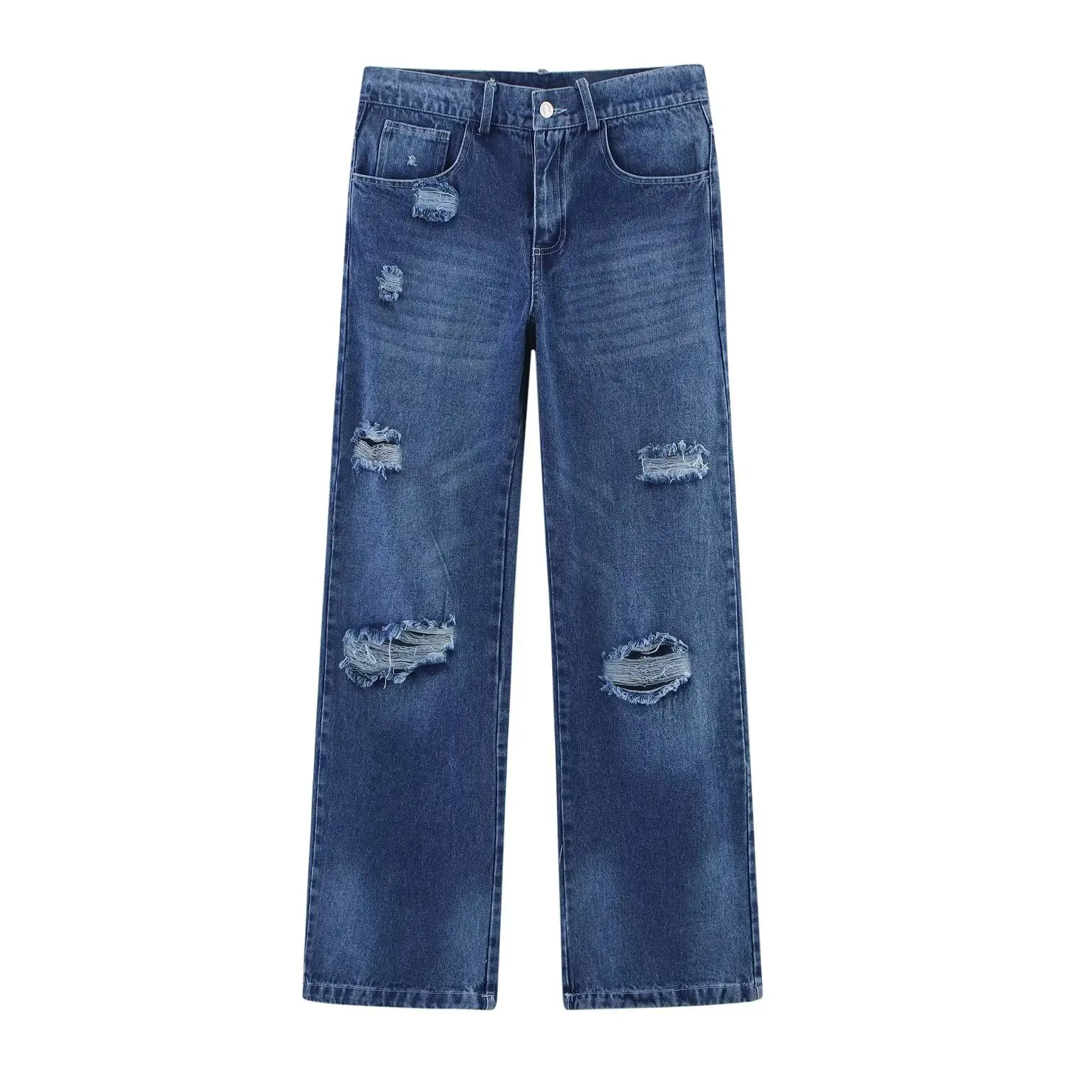 European American Cross-border New Classic Women's Washed Cut-out Ripped Streetwear Spring Summer Quick Dry Mid Waist