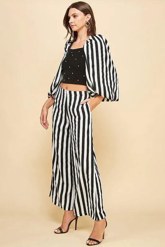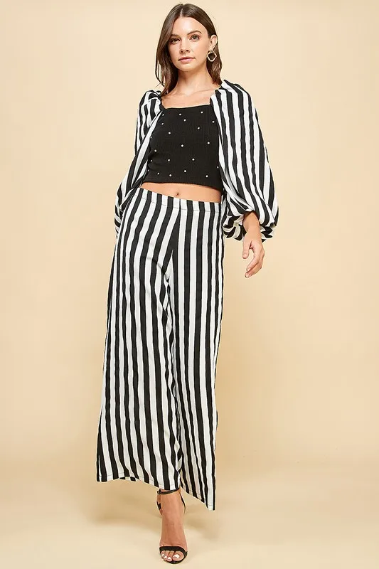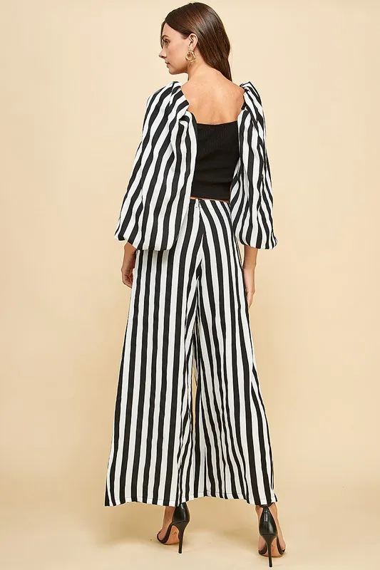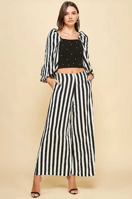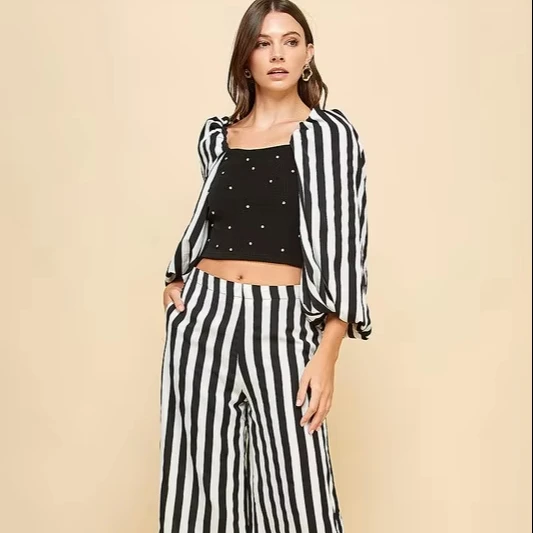 Women's Black White Stripe 2-piece Set Square Rhinestone Camisole + Wide-leg Pants Daily Wear Luxury Vintage Cocktails XS