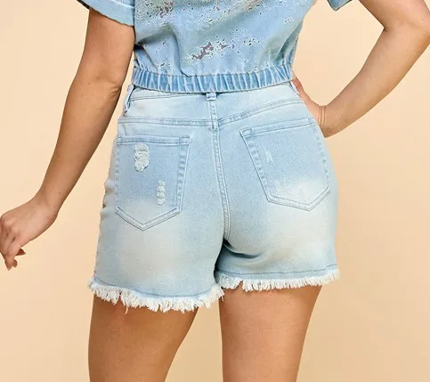 Women's Summer Vintage Casual Mid Waist Heavy-Duty Chain Denim Shorts Quick Dry & Breathable