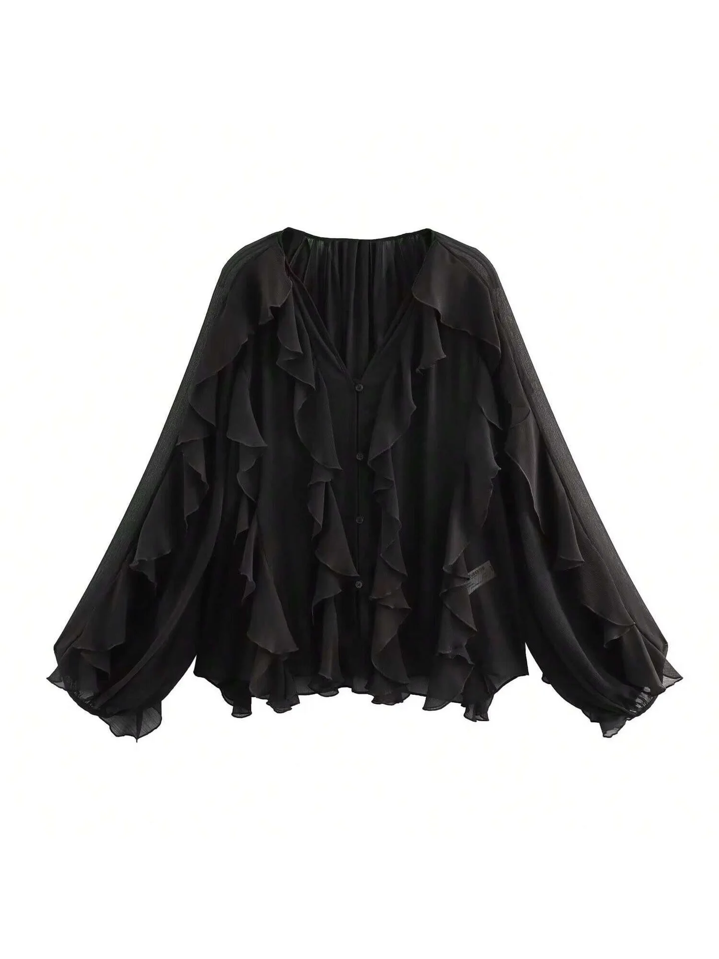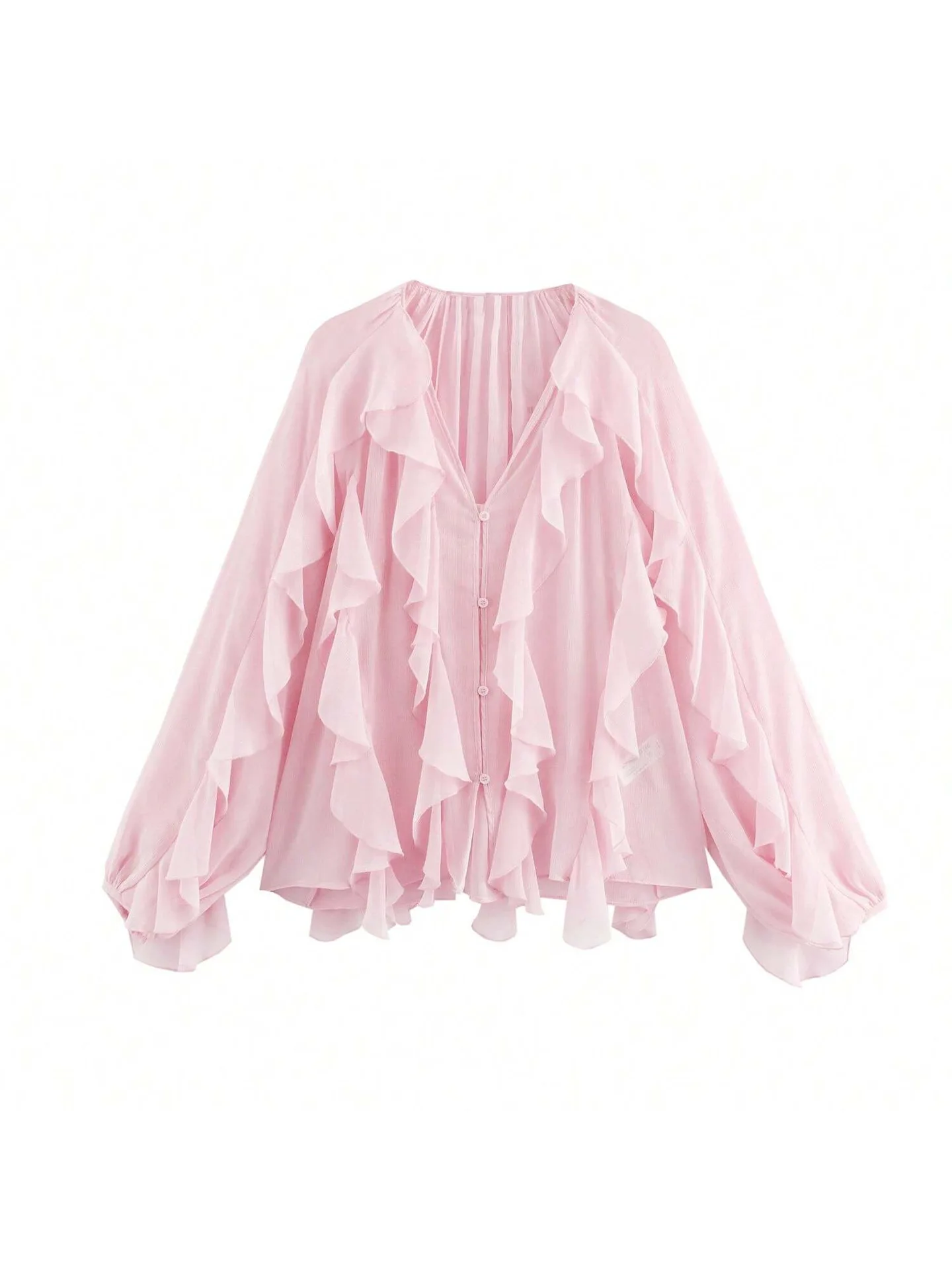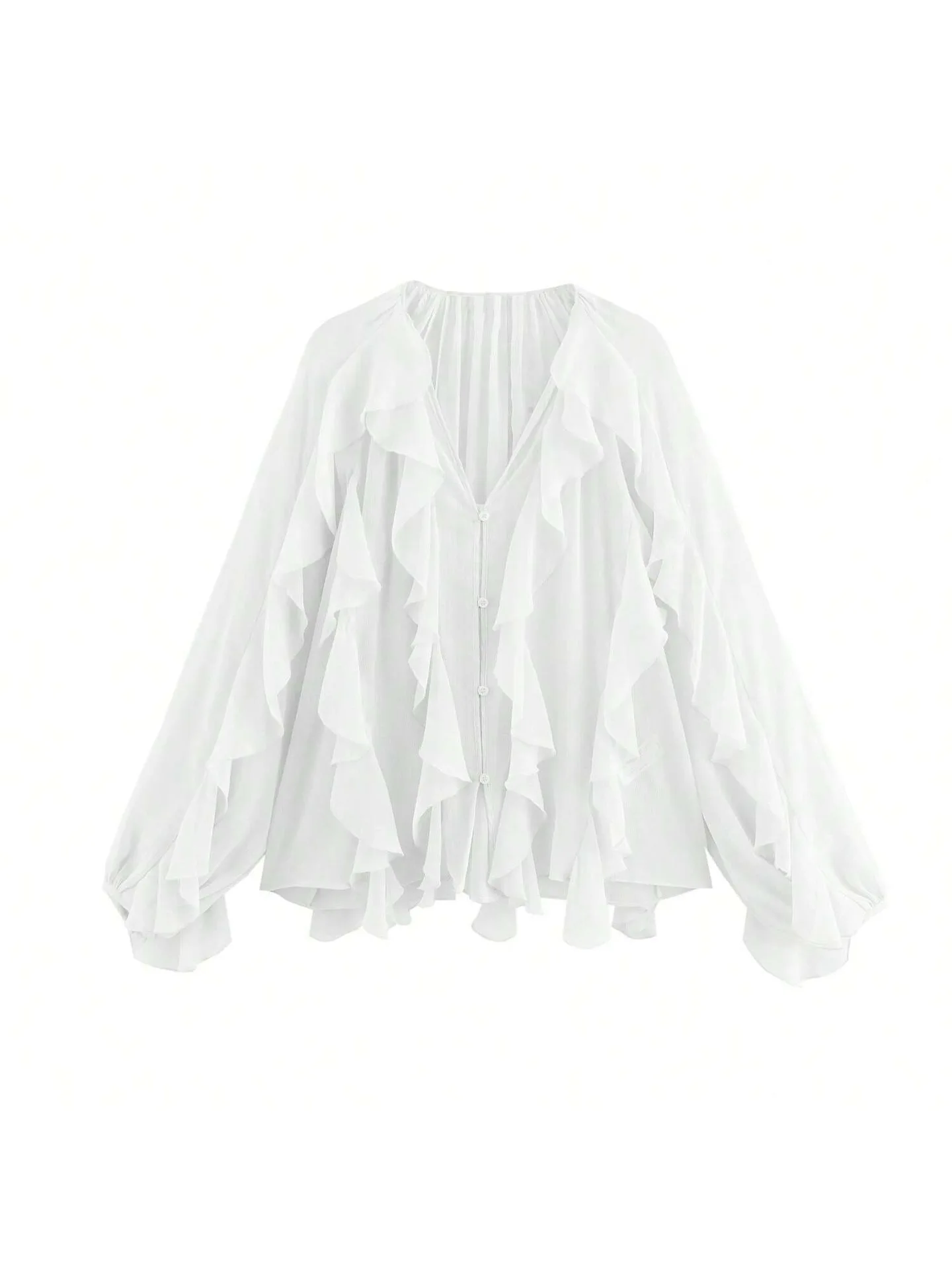 ZYHT 82024 White Blouse with Ruffled Cap Sleeves V-Neck Blouses Et Chemises Pour Femmes White Blouses for Women