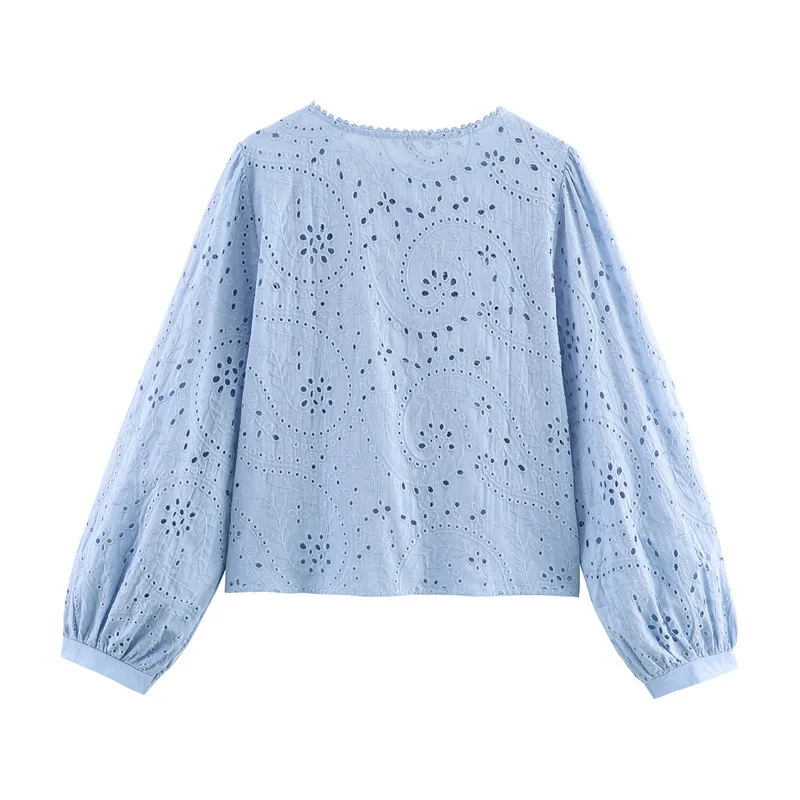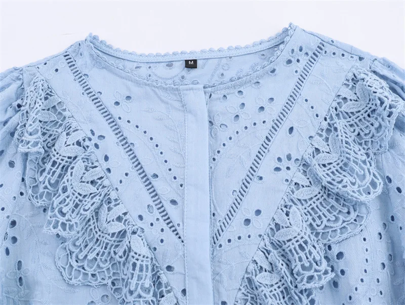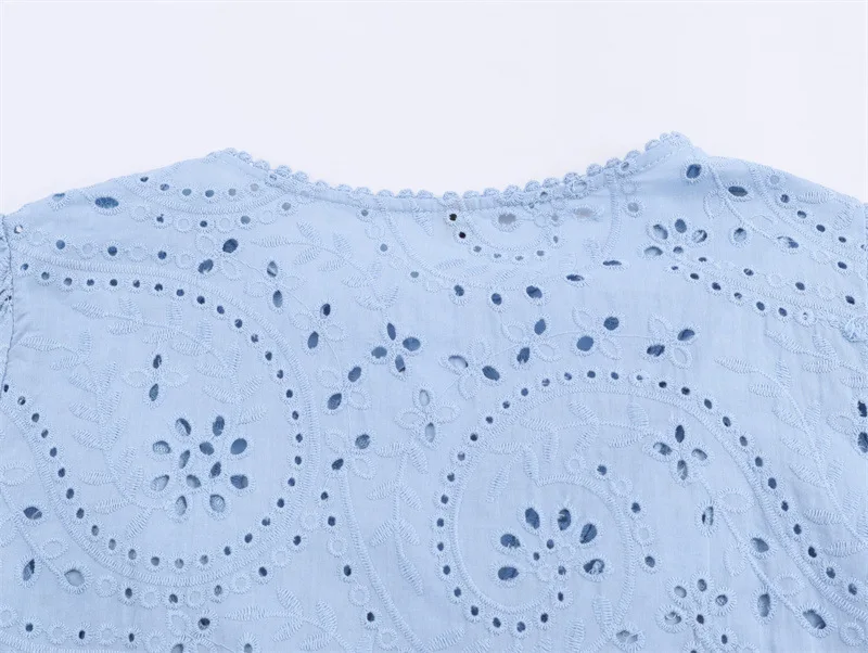 Foreign Trade New Women's Casual Summer European American Full Sleeve Loose Hollow Short Embroidered Lace Cotton/Polyester