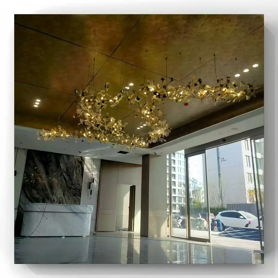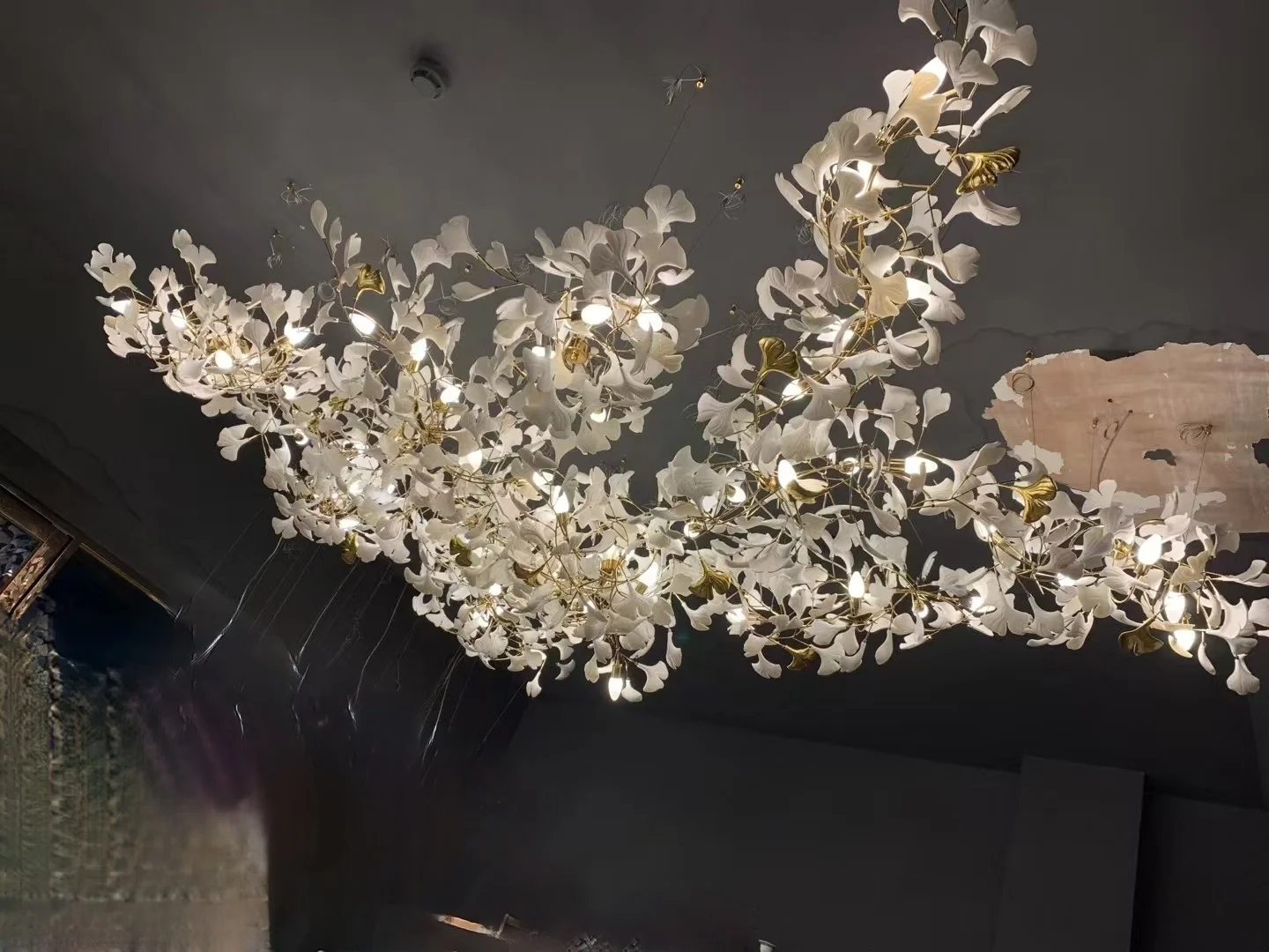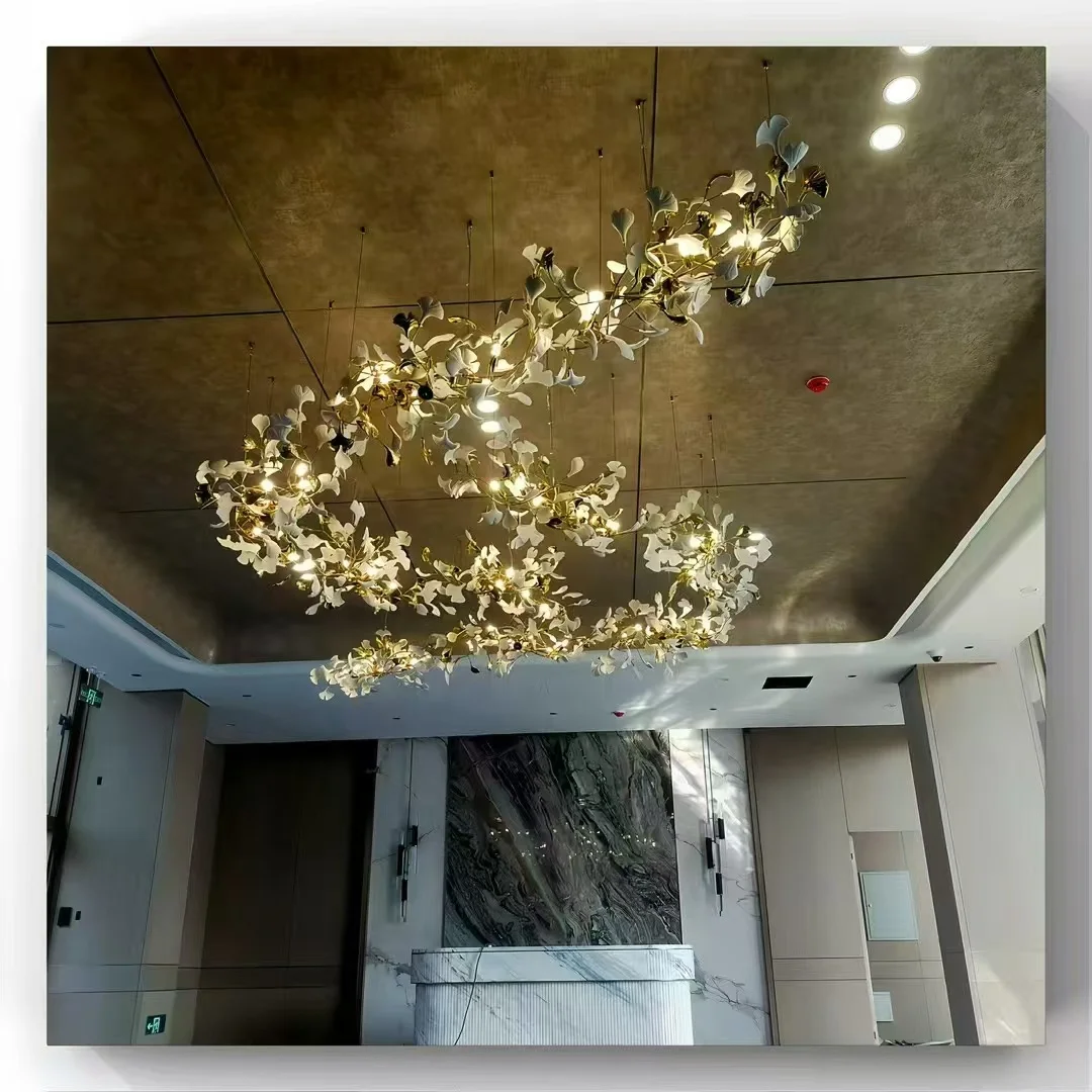 Modern Custom LED Ginkgo Leaf-Inspired Acrylic Branch Light 3000K Color Temperature Chandeliers Pendant Lights for Room