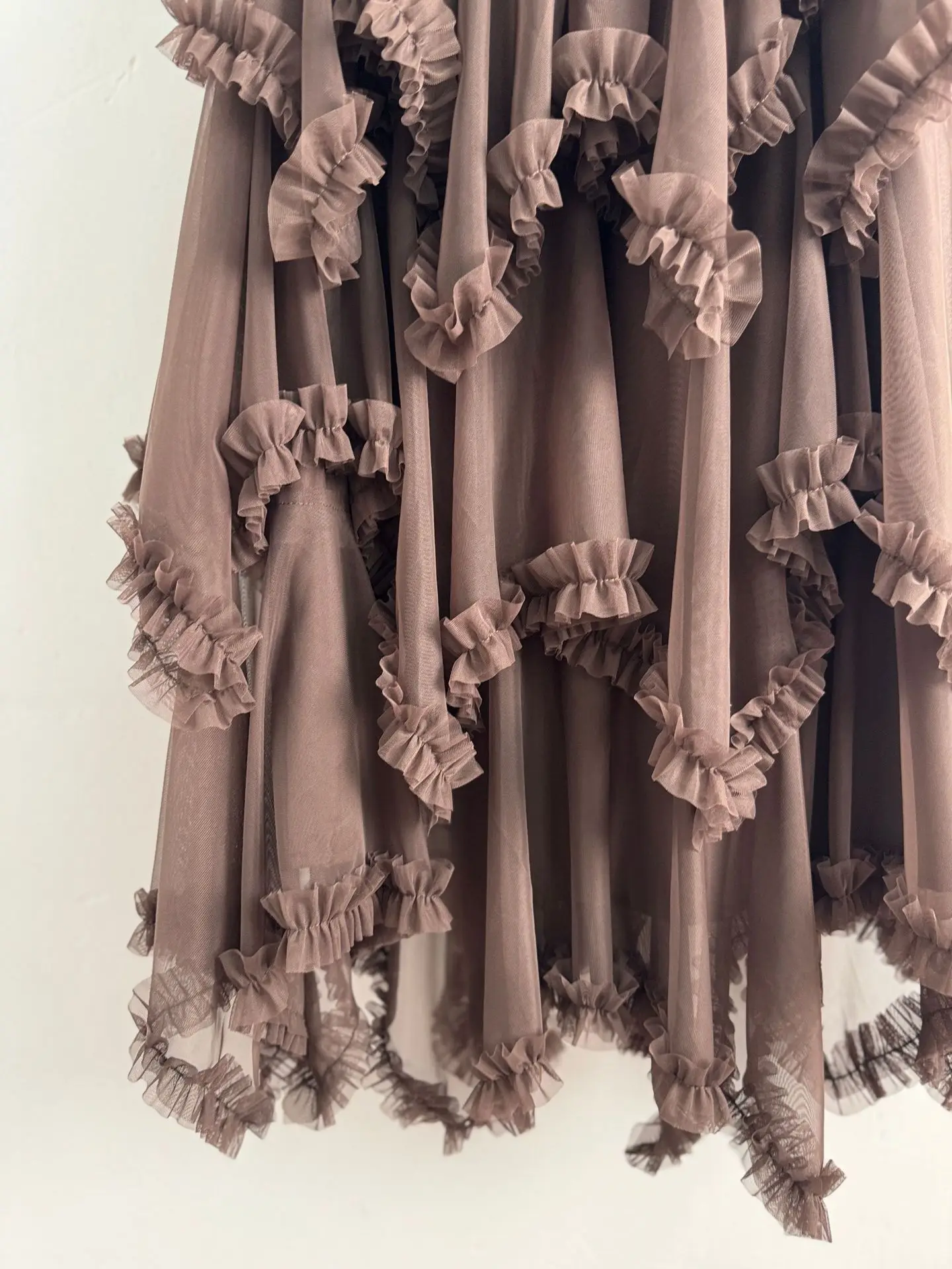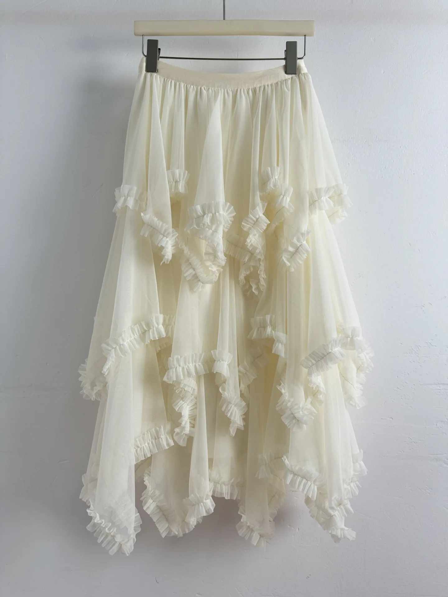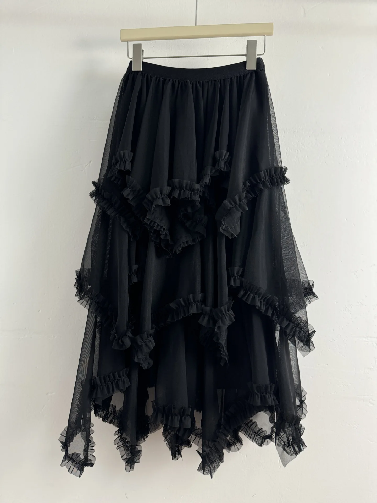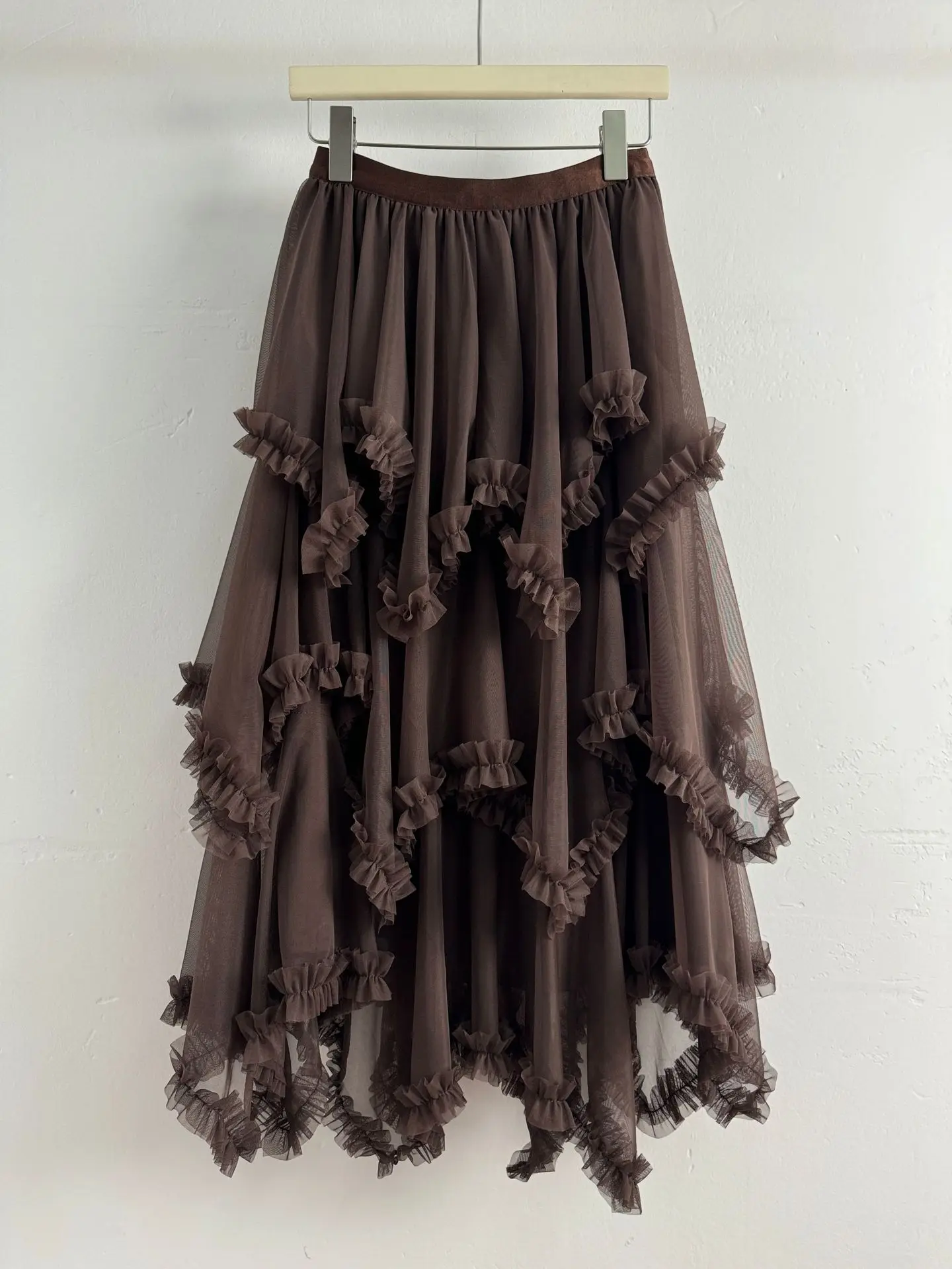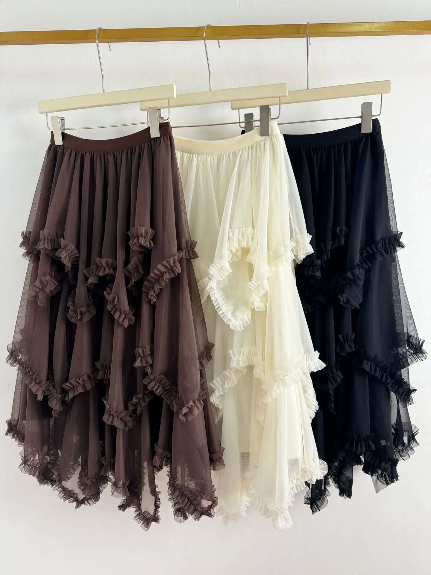 European American 3D Stitching Ruffles Beaded Breathable Anti-Wrinkle High Waist Slimming Mid-length Spring Vintage Skirt Women
