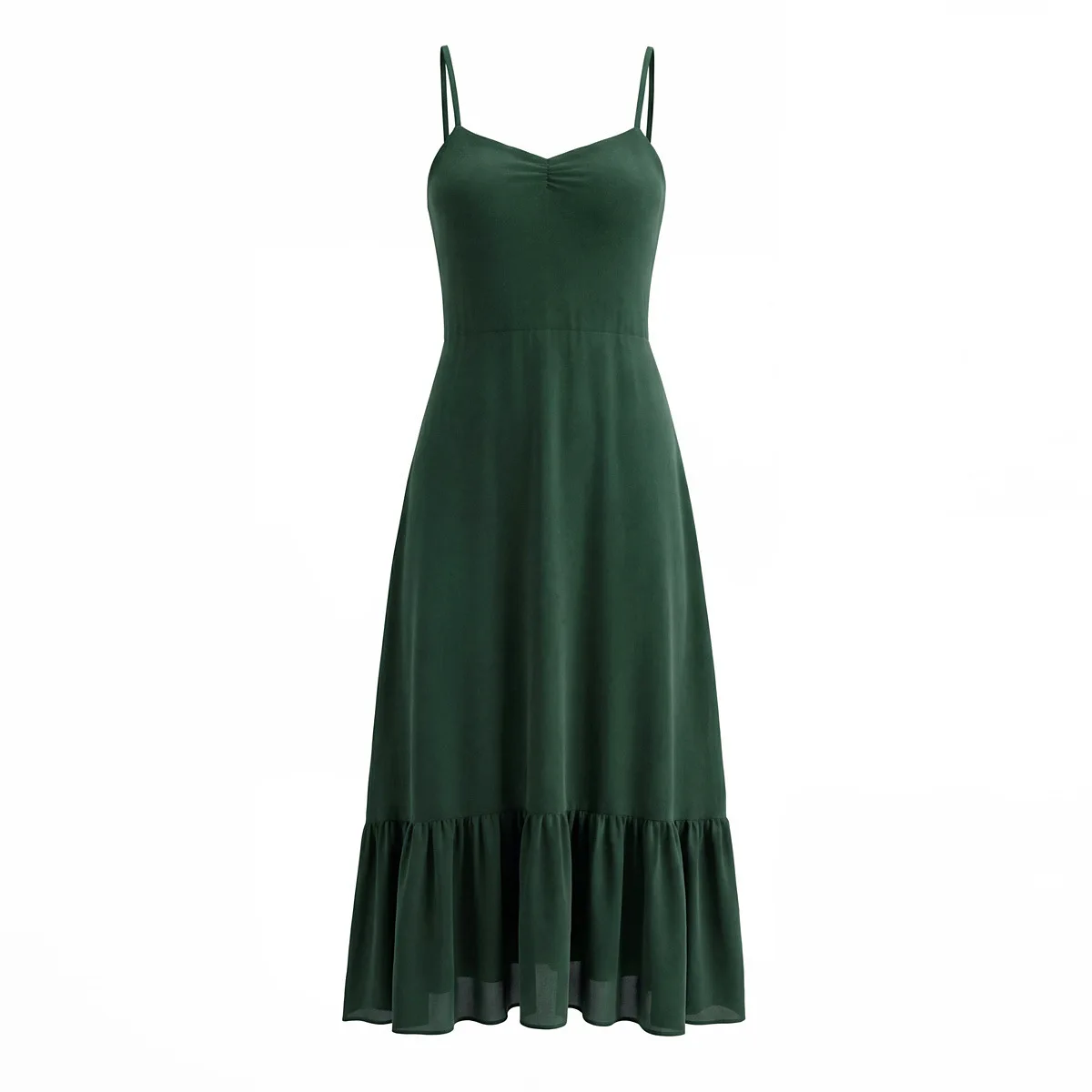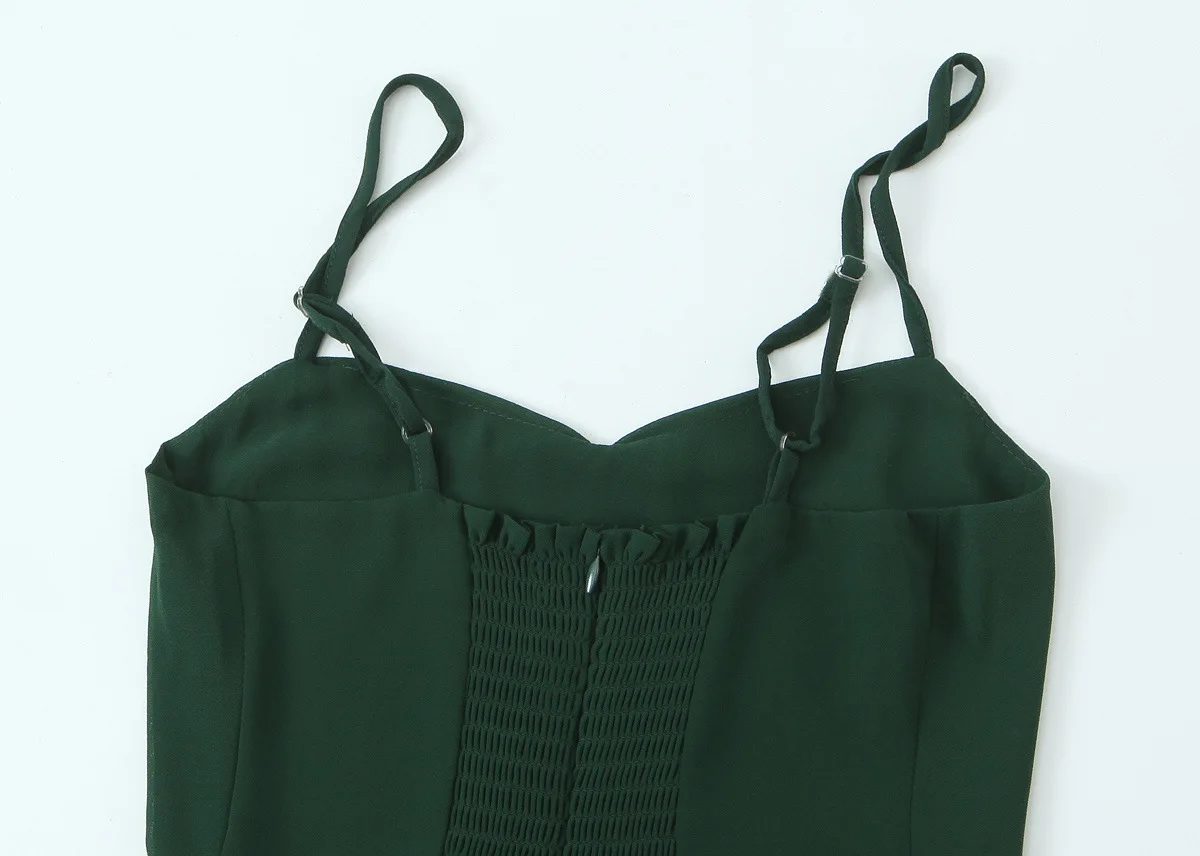 European and American Style New Women's Summer Pleated Woven A-Line Empire Waist Slimming Versatile Long Suspender Dress