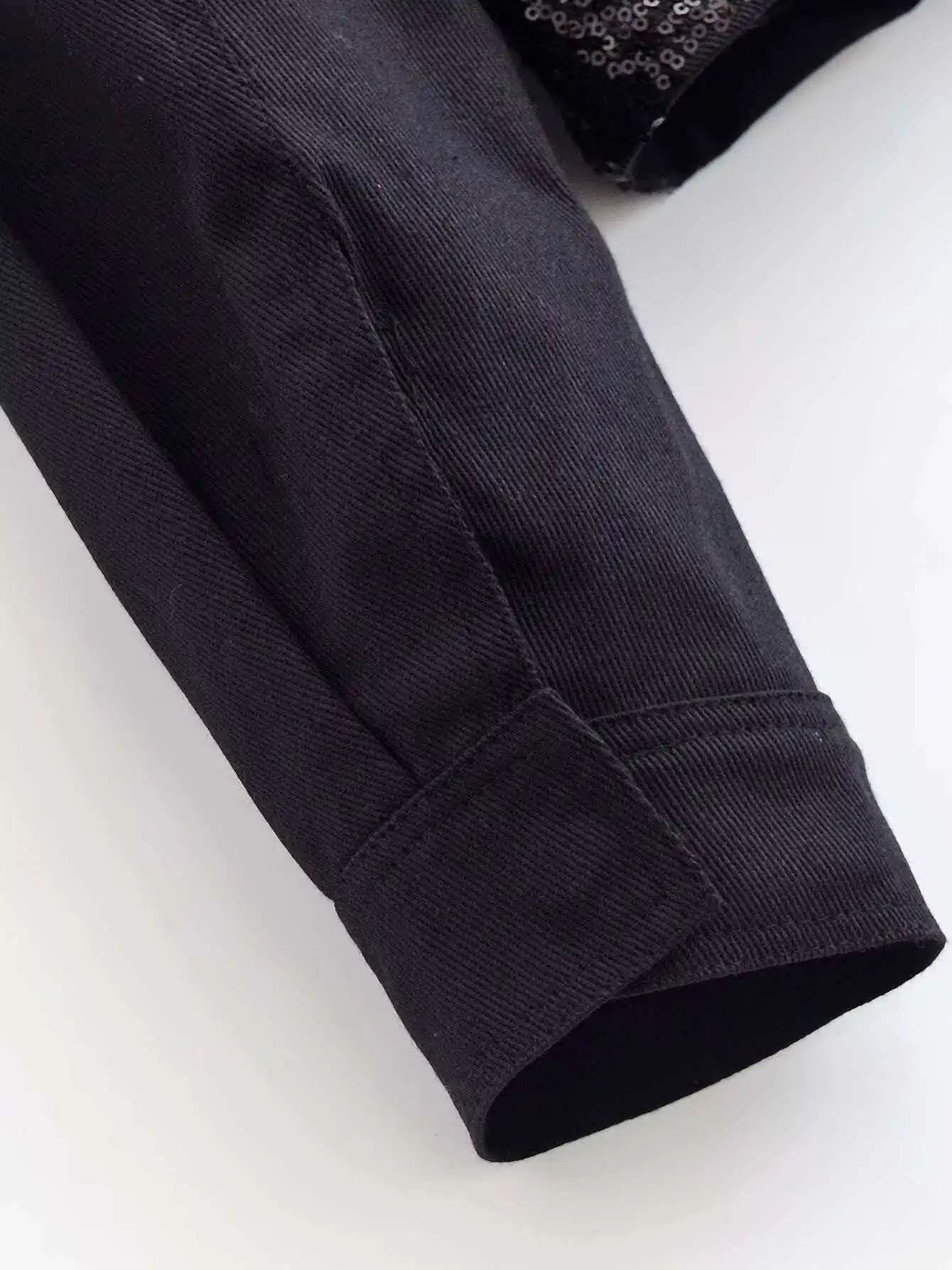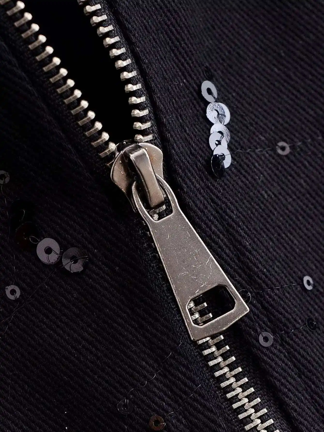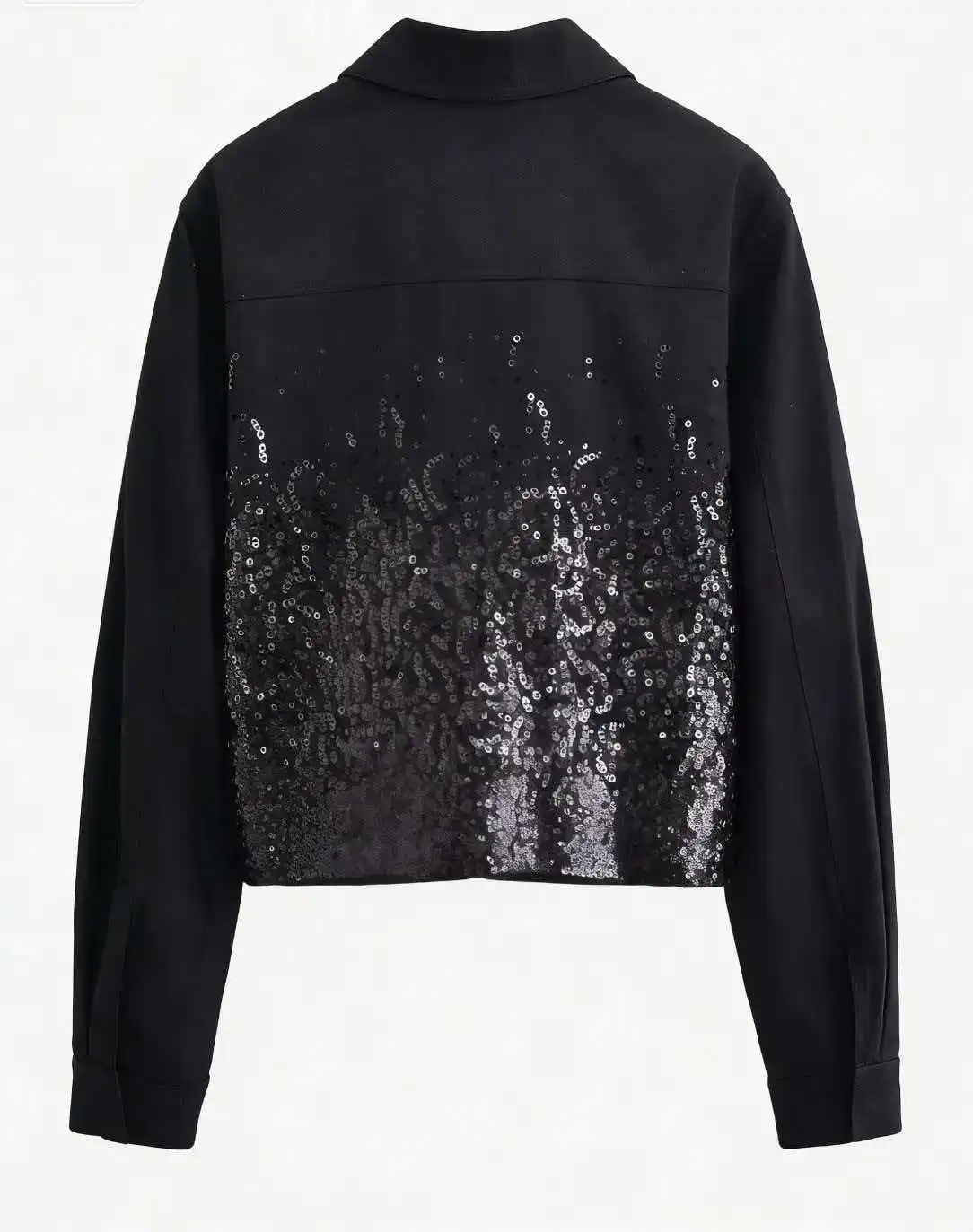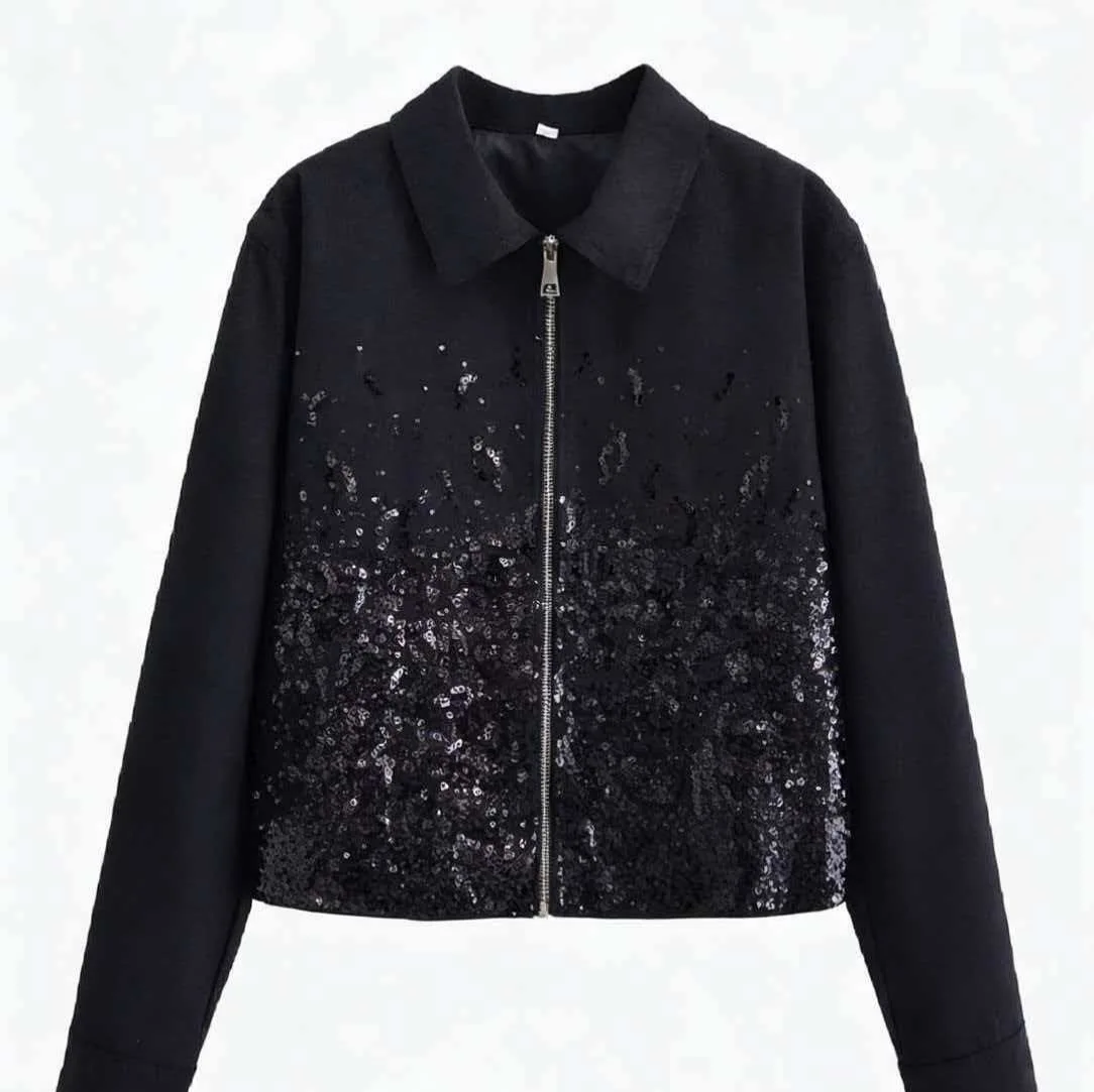 European and American Foreign Trade Women's ELEGANT Autumn High-end Black Sequin Embroidery Zipper Blouson Jacket
