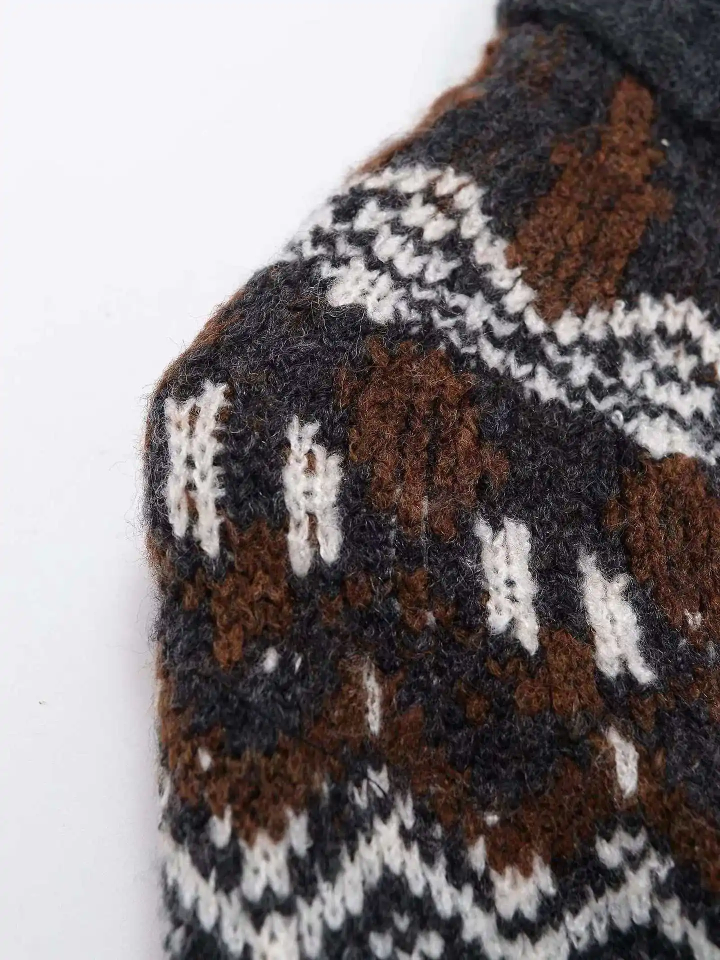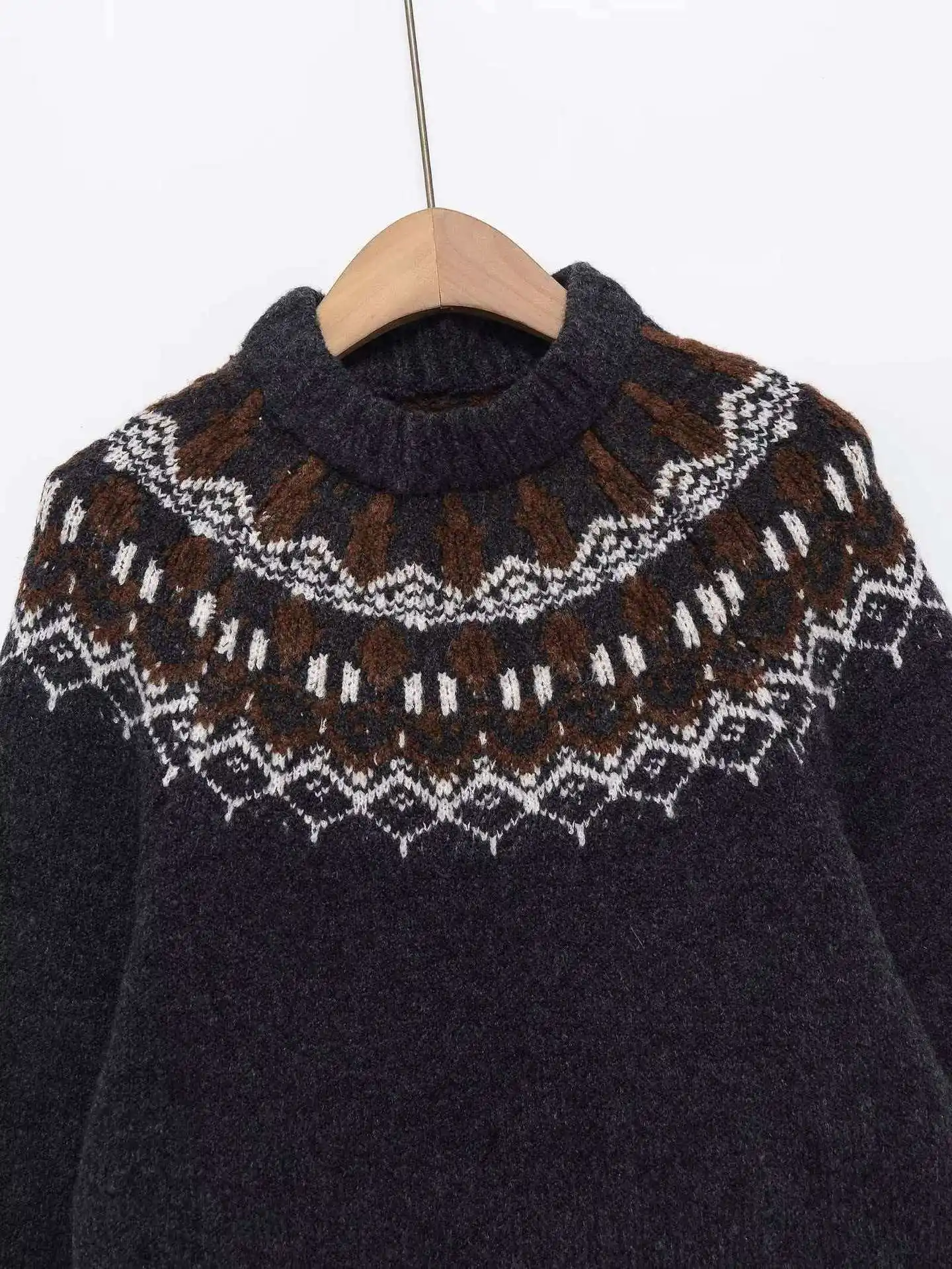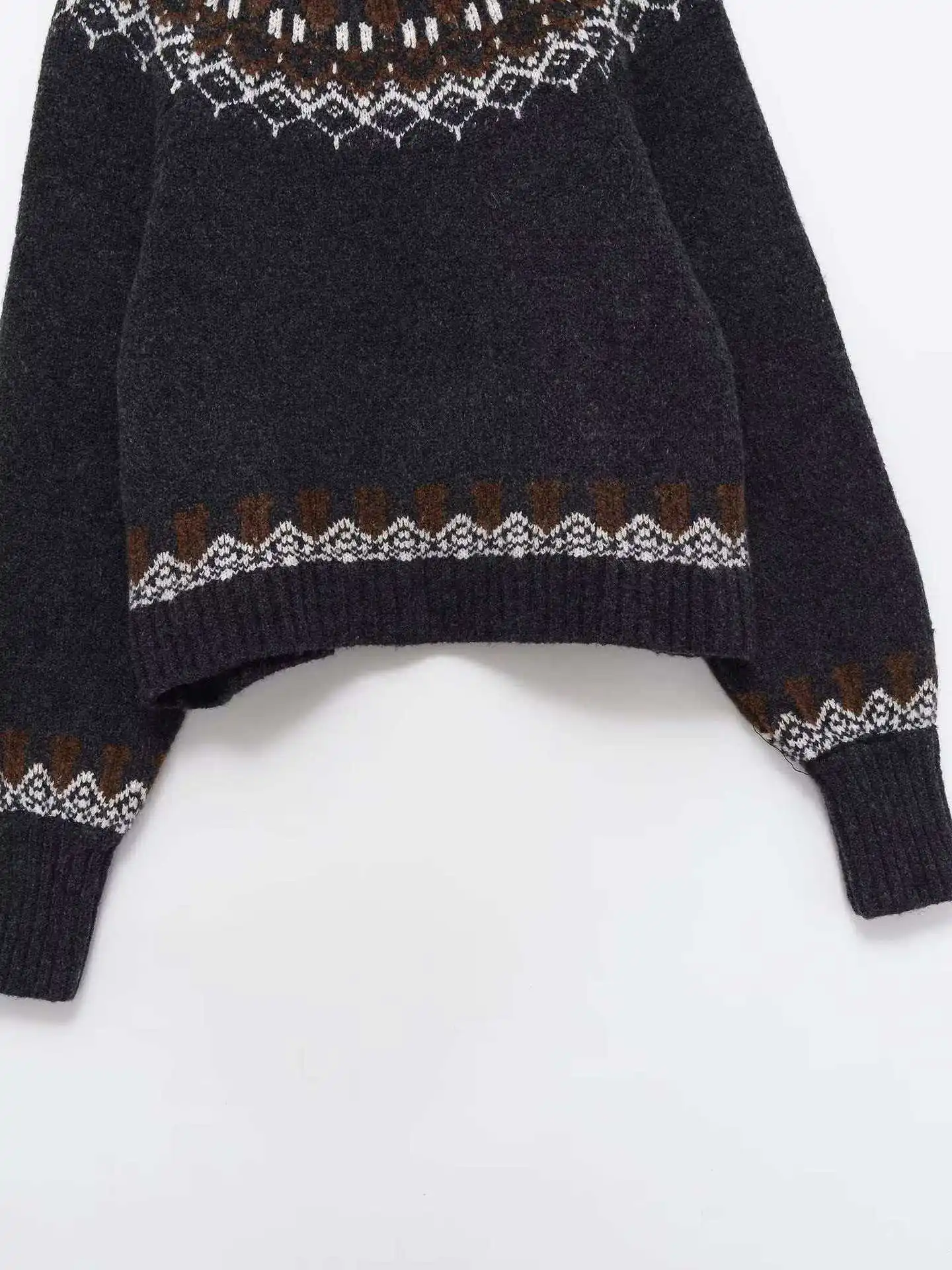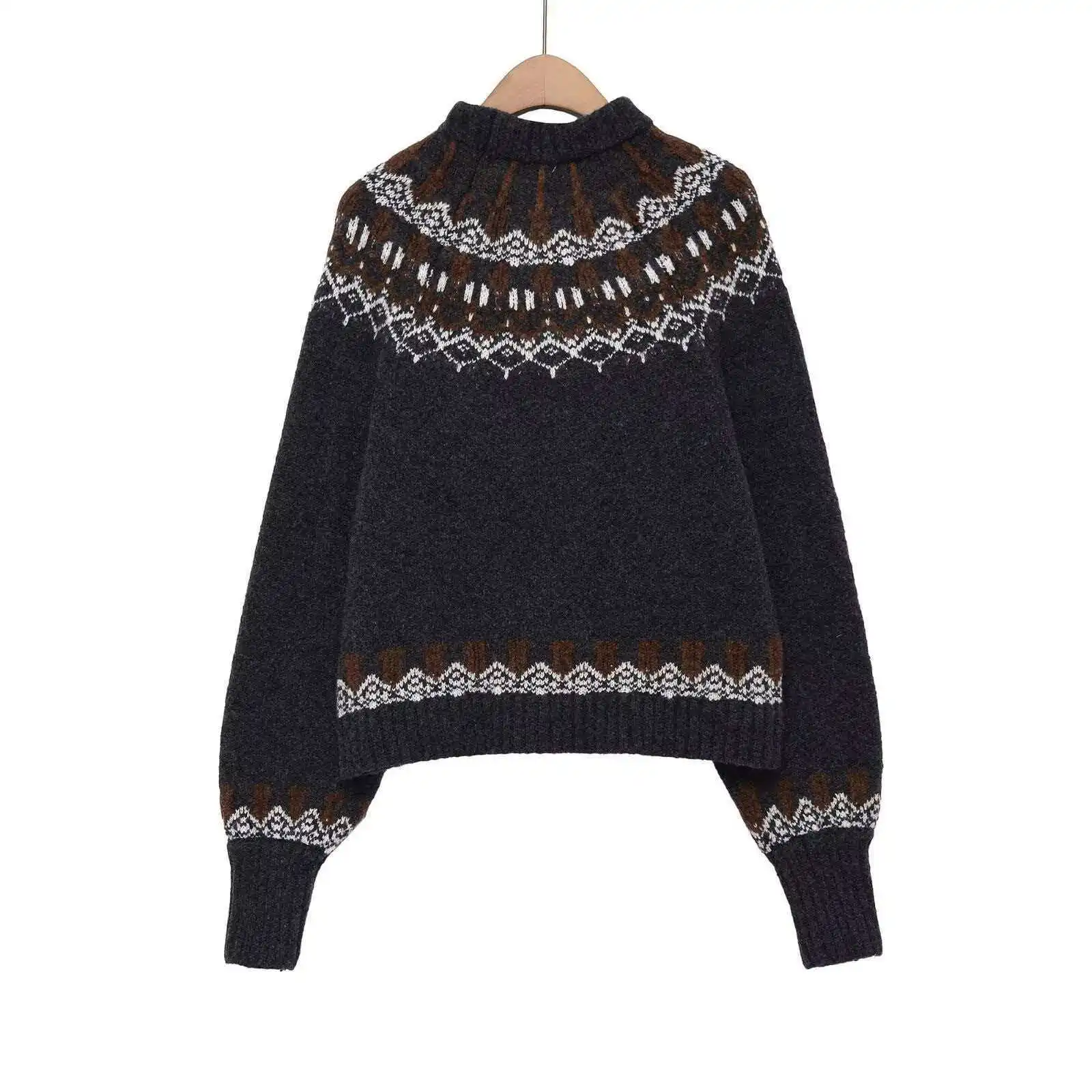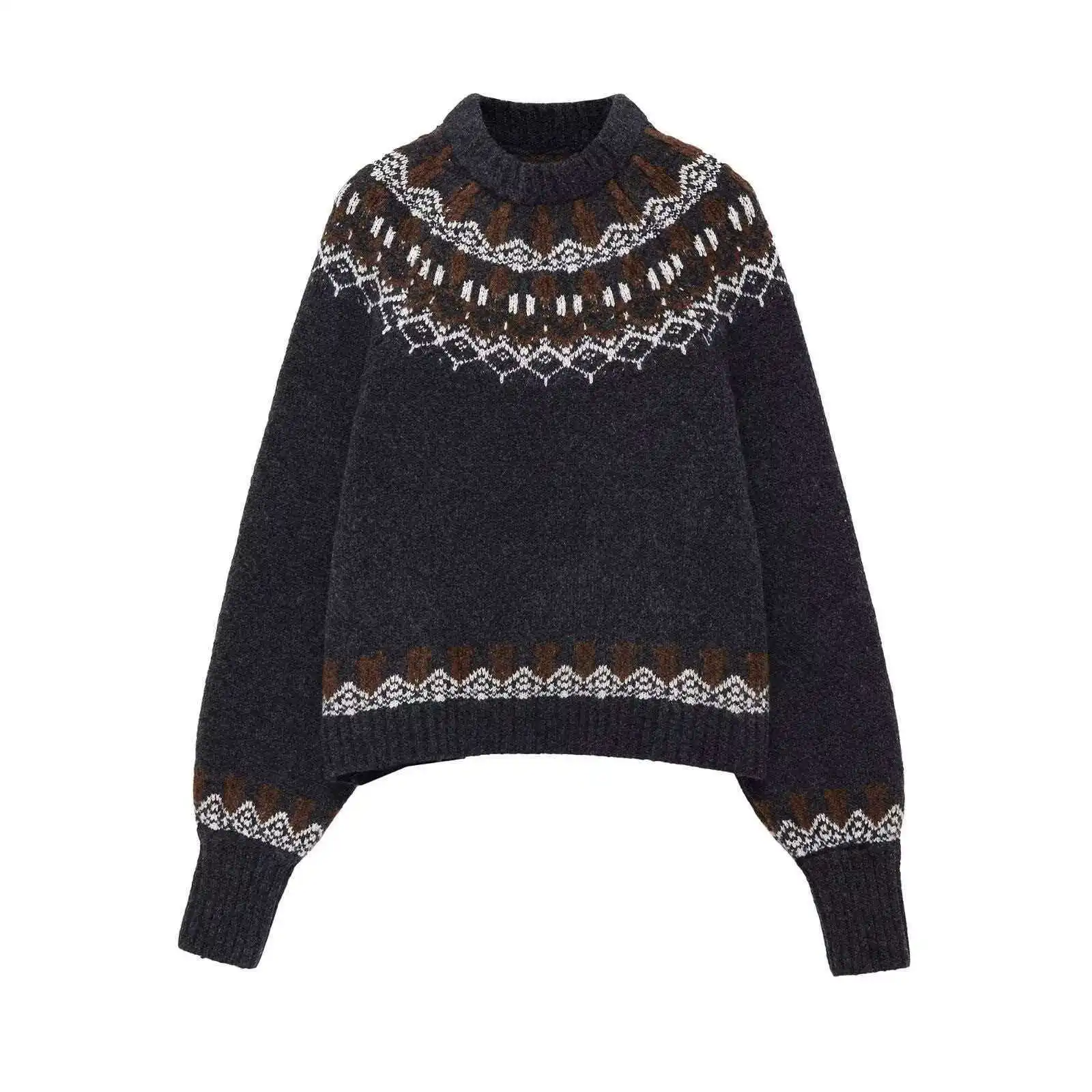 Cross-border European American Foreign Trade Women's Clothing Explosions Autumn Simple All-match Carbon Black Jacquard Sweater