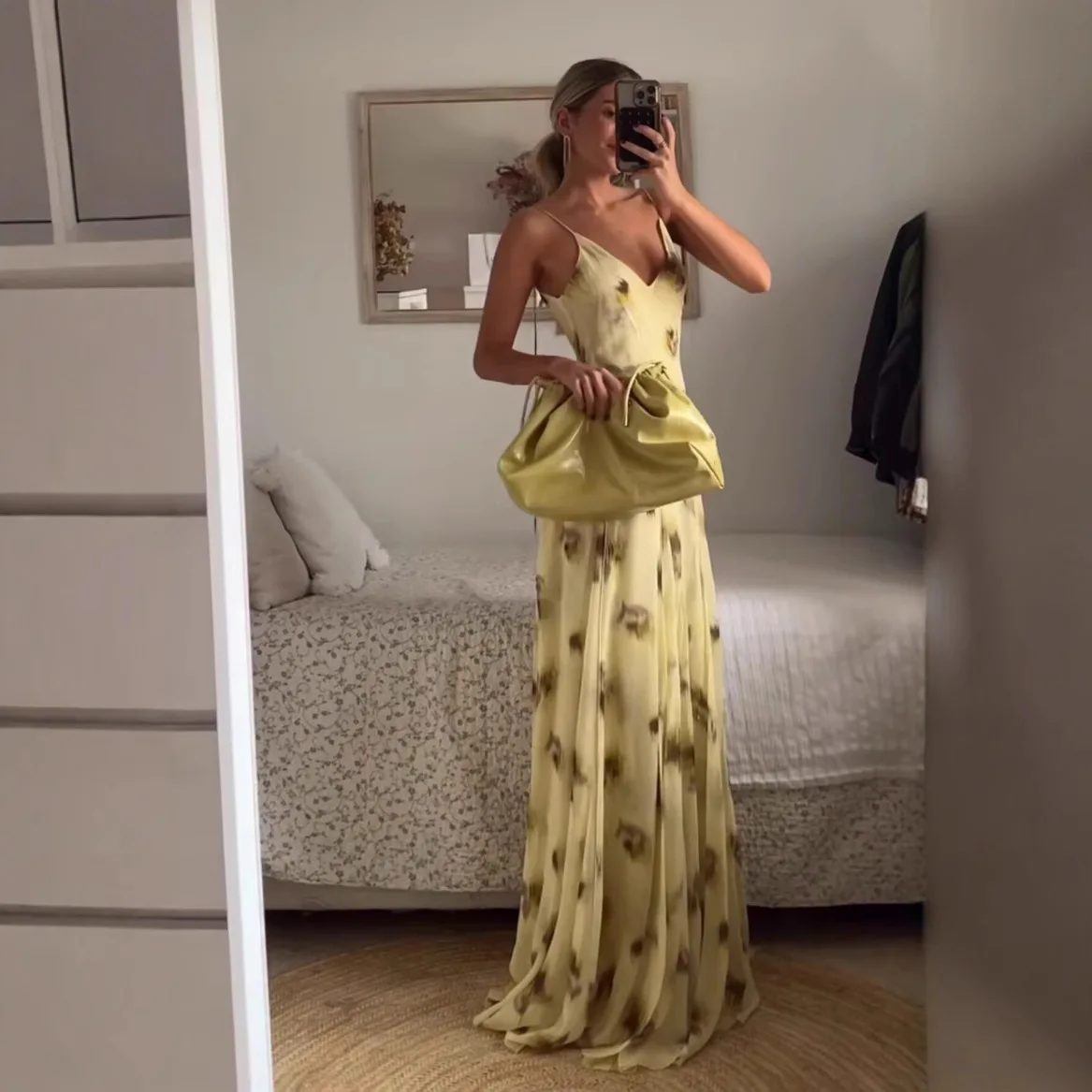 ZYHT 73957 Hot Selling Women Lady Printed Satin Beige Mermaid Fish Tail Floor Length Party Cocktail Evening Dress Gown