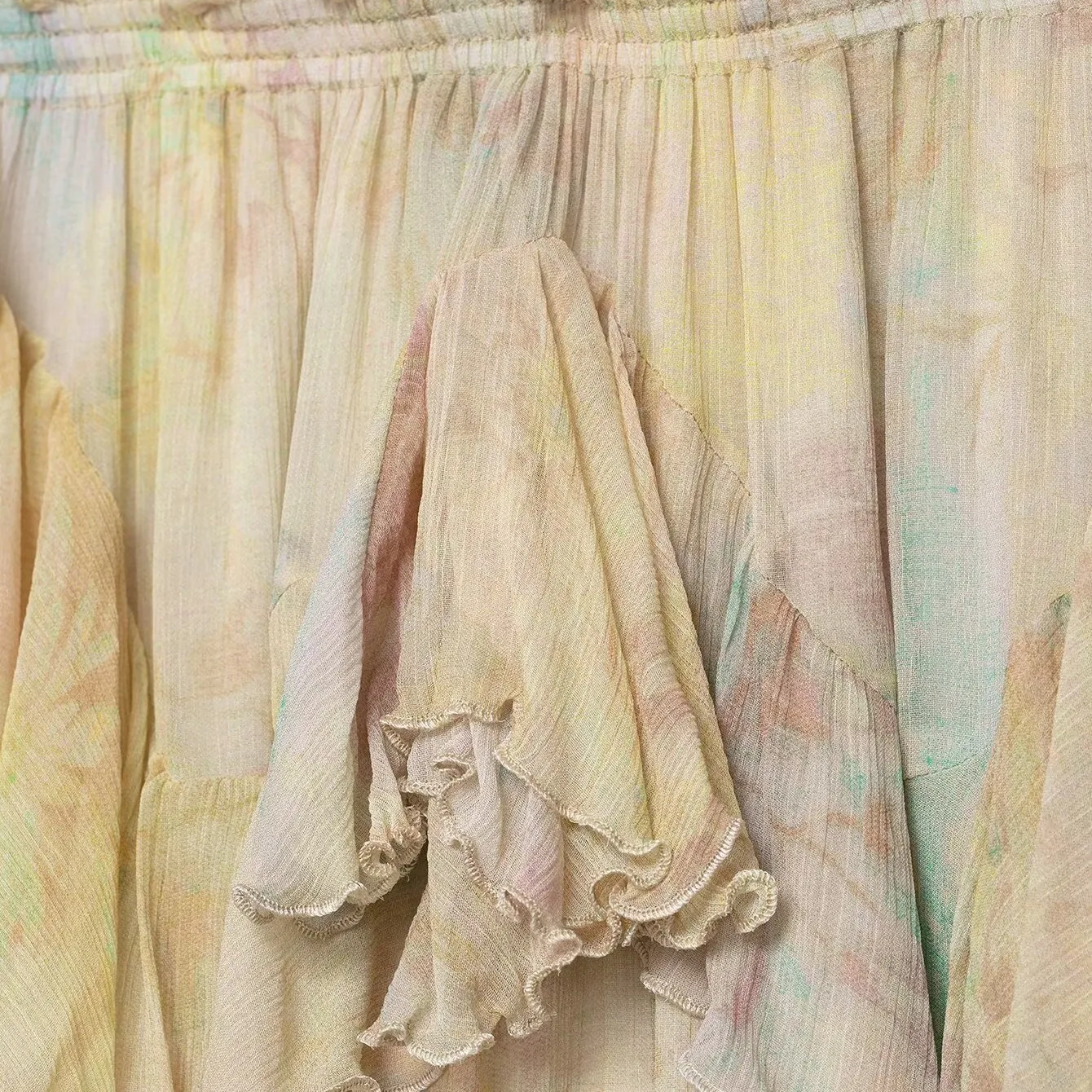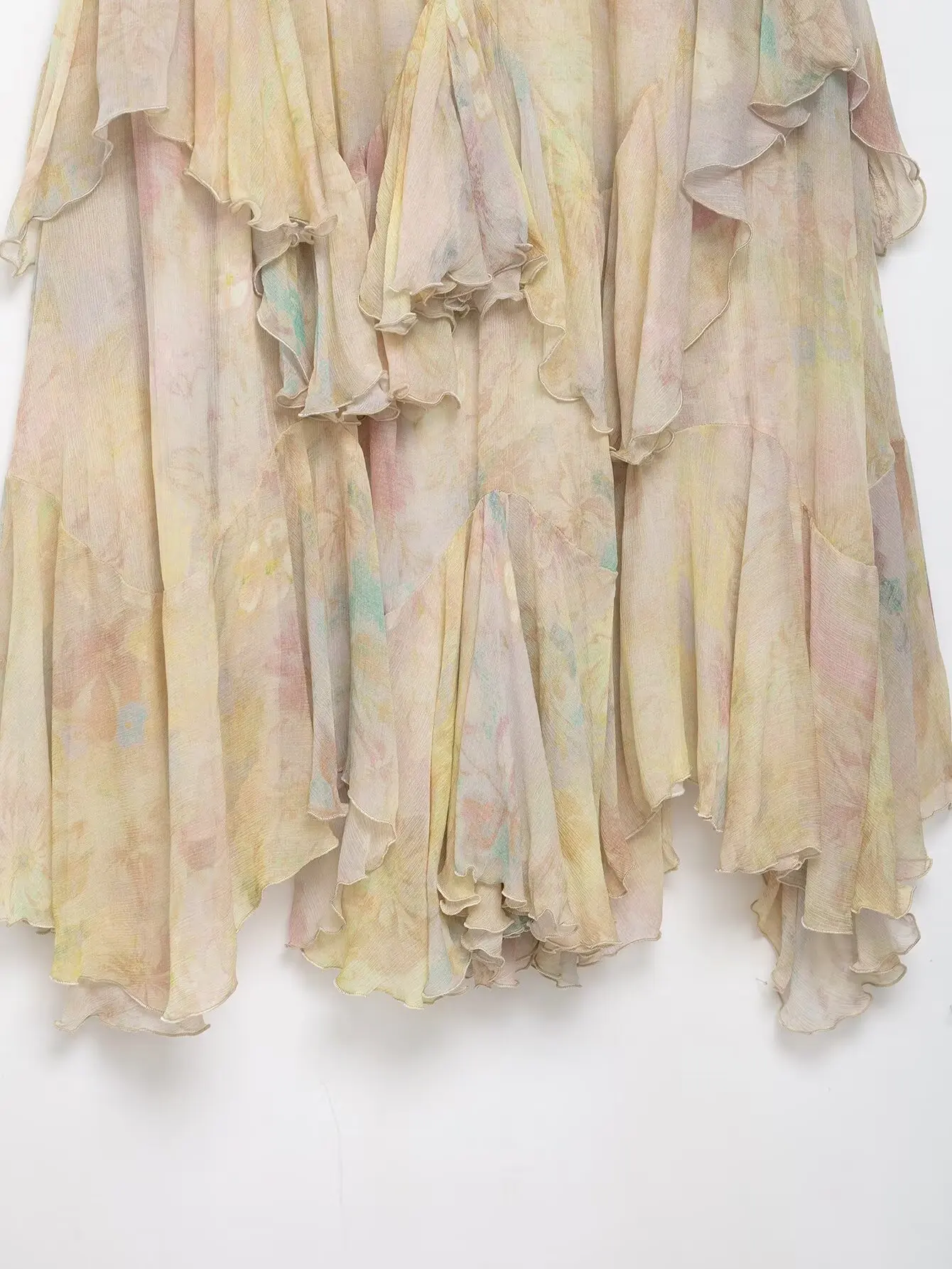 Cross-border European and American Women's Elastic Sweet Spring Polyester New Laminated Printed Ruffled Decorative Skirt