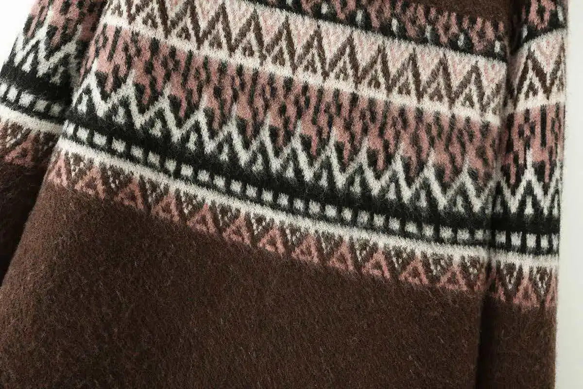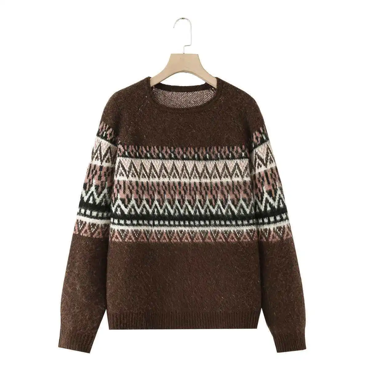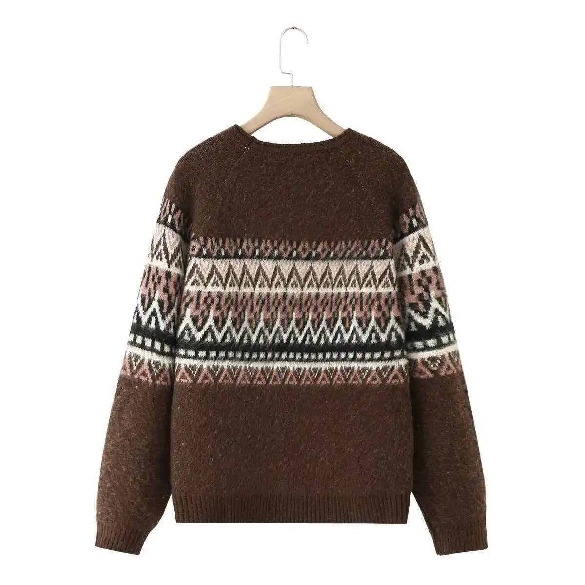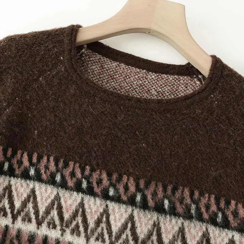 Cross-border Korean European and American Women's Autumn Long Sleeve Loose Vintage Pattern Jacquard Polyester Sweater