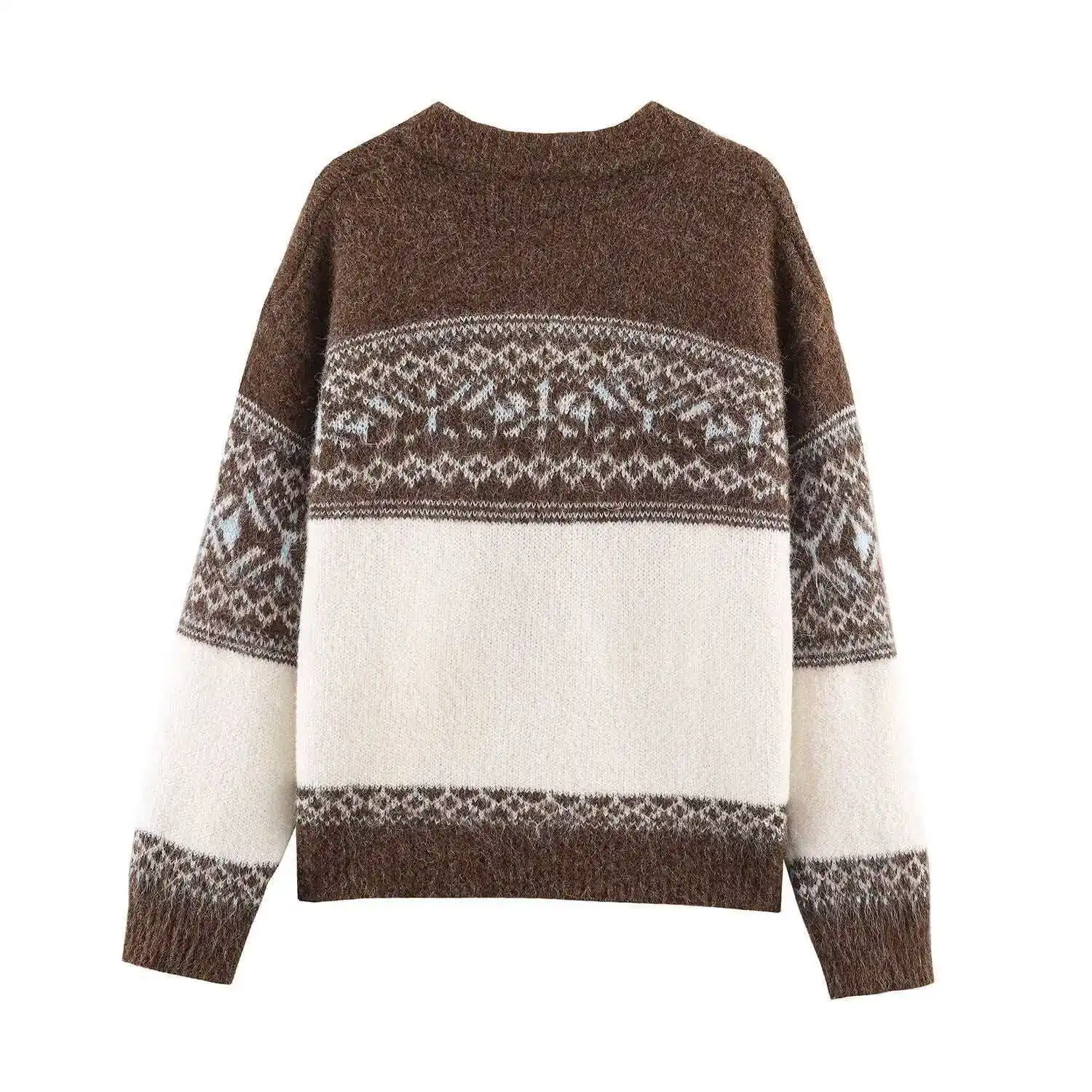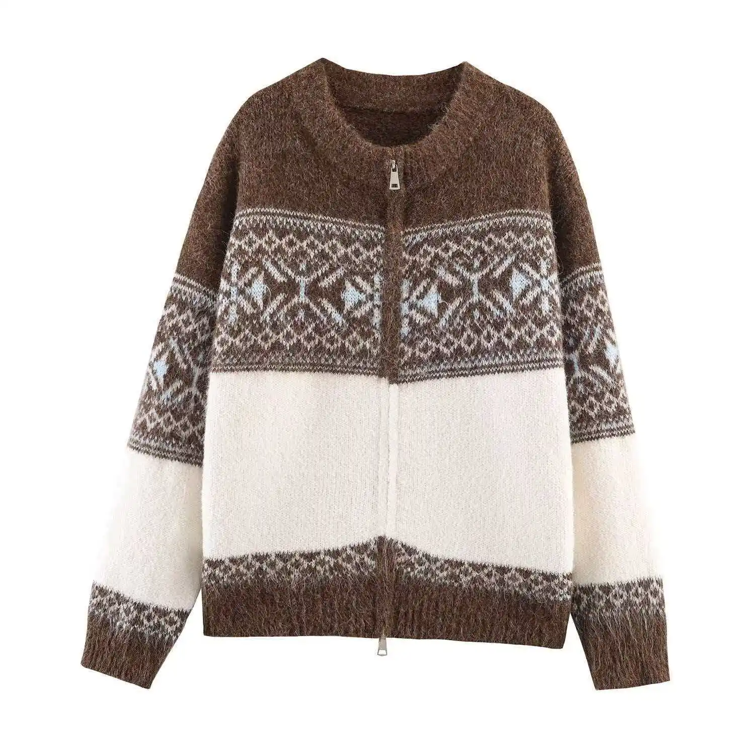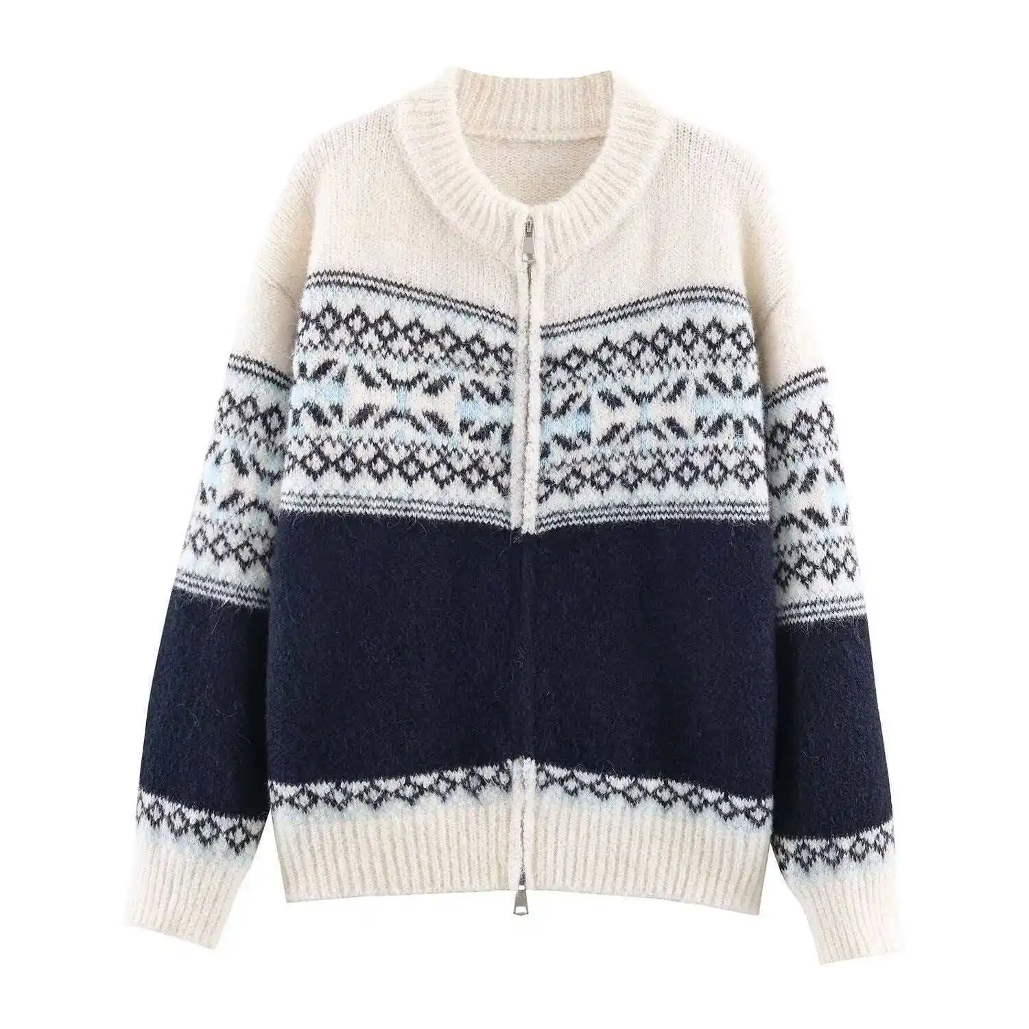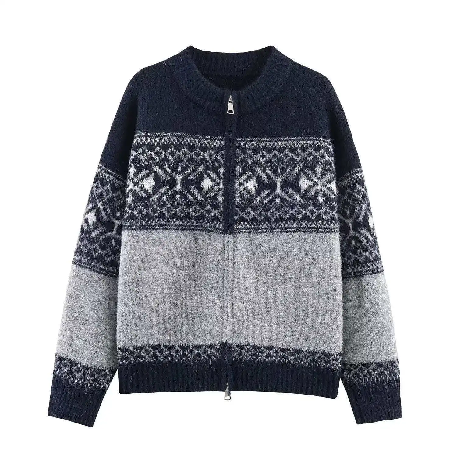 Cross-border European American Foreign Trade Women's Clothing Explosion Autumn Retro Versatile Multi-color Jacquard Zipper Long